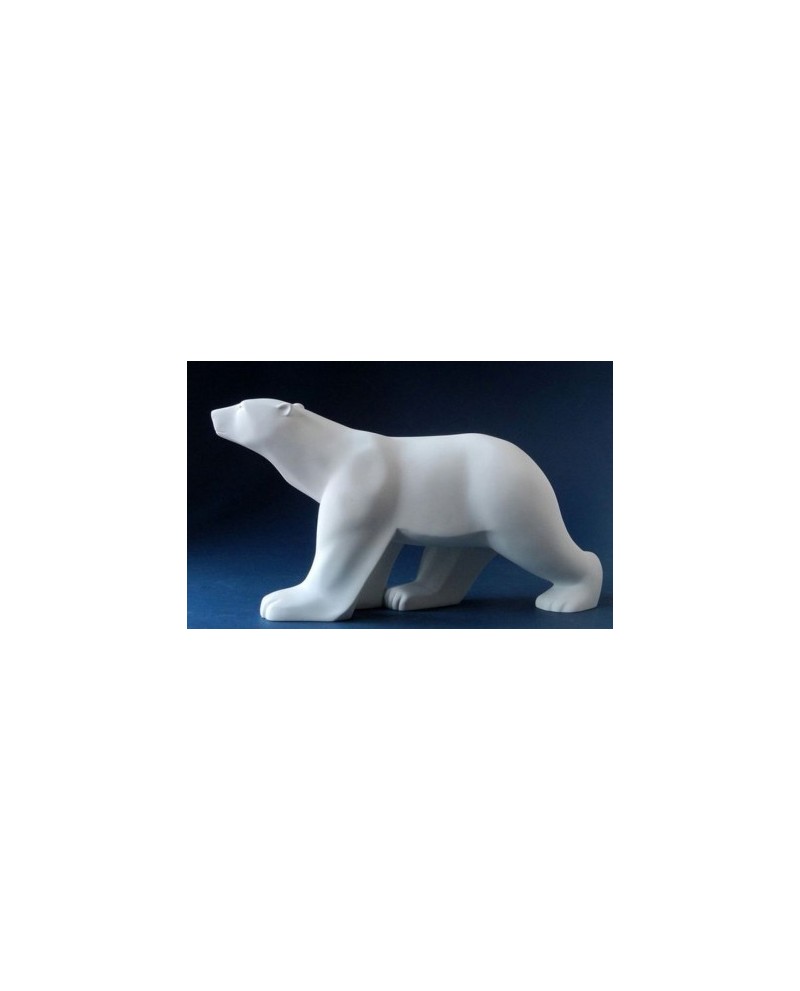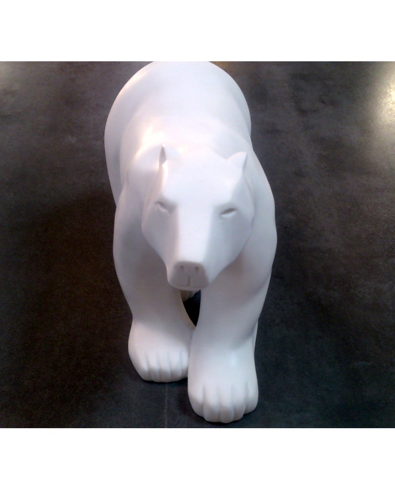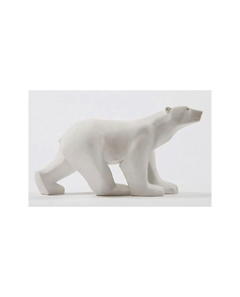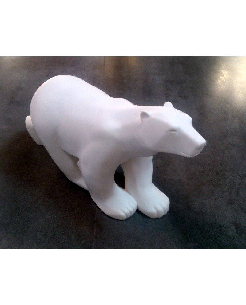 Statuette célèbre ours blanc "Pompon" en pierre blanche L30 H 18 cm.