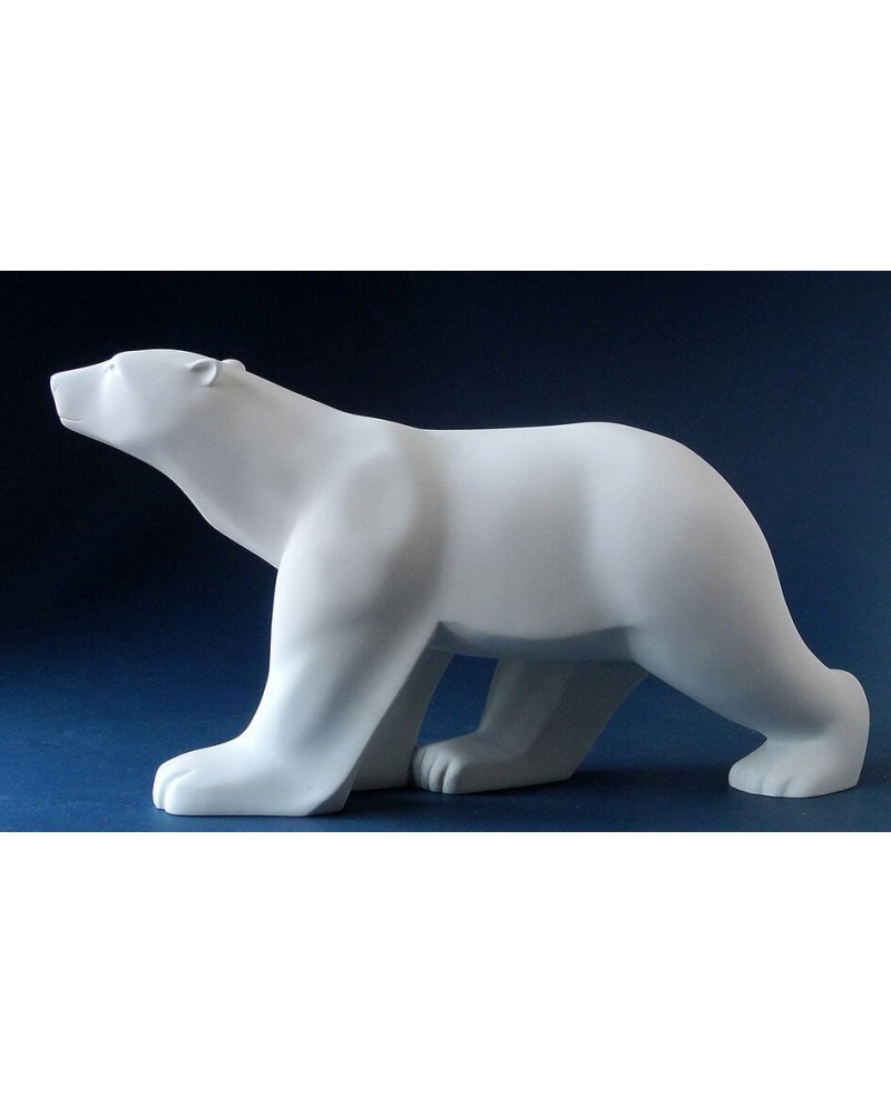 Statuette célèbre ours blanc "Pompon" en pierre blanche L20 H 11 cm.
