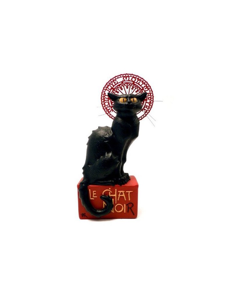 Statuette "Le Chat Noir" de la célèbre affiche du légendaire cabaret de Rodolphe Salis, matière résine peinte à la main, H 21 cm.