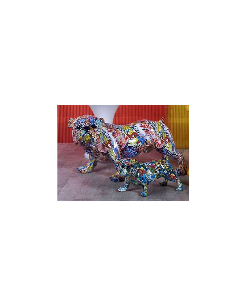 La collection GRAFFITI est une gamme de sculptures en résine au style urbain décalé. Ce chien bouledogue a une taille de 72 cm de long pour marquer les esprits de la décoration ! Il s'intègrera parfaitement dans un intérieur moderne industriel, et y ajoutera une touche street art. Existe également en version miniature dans un autre décor urbain.