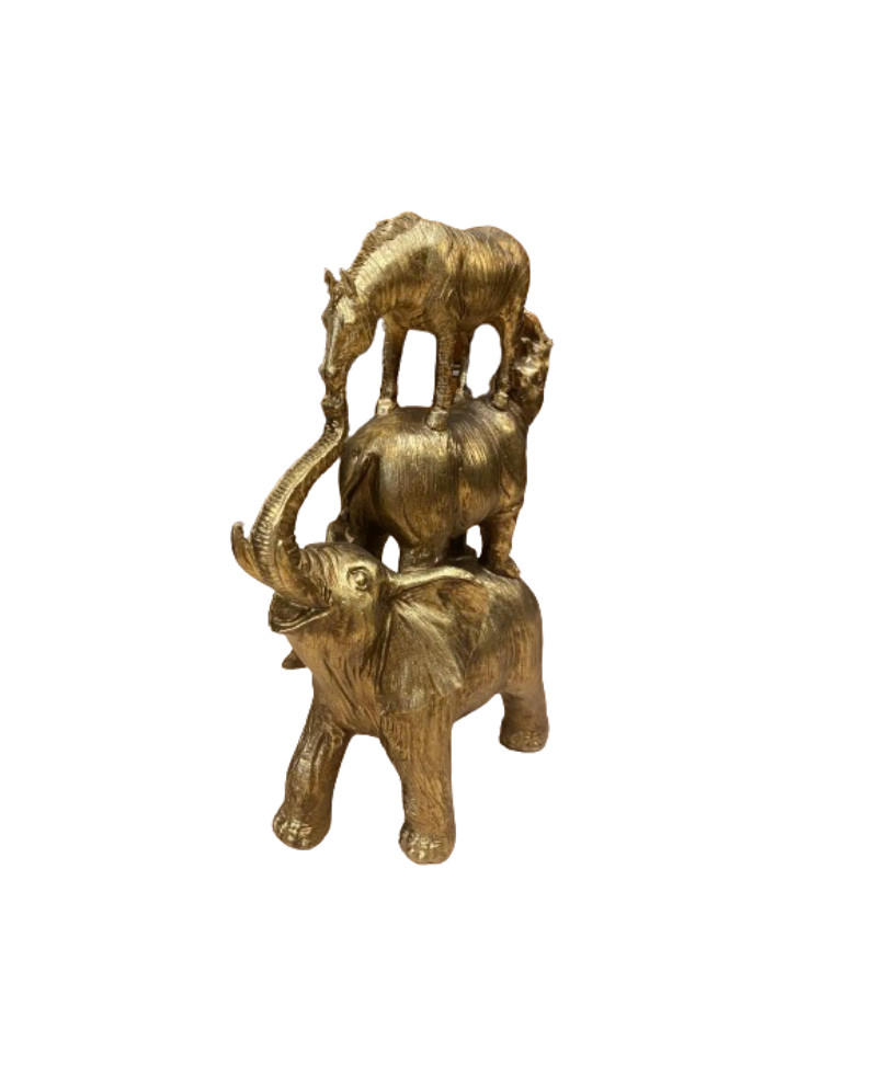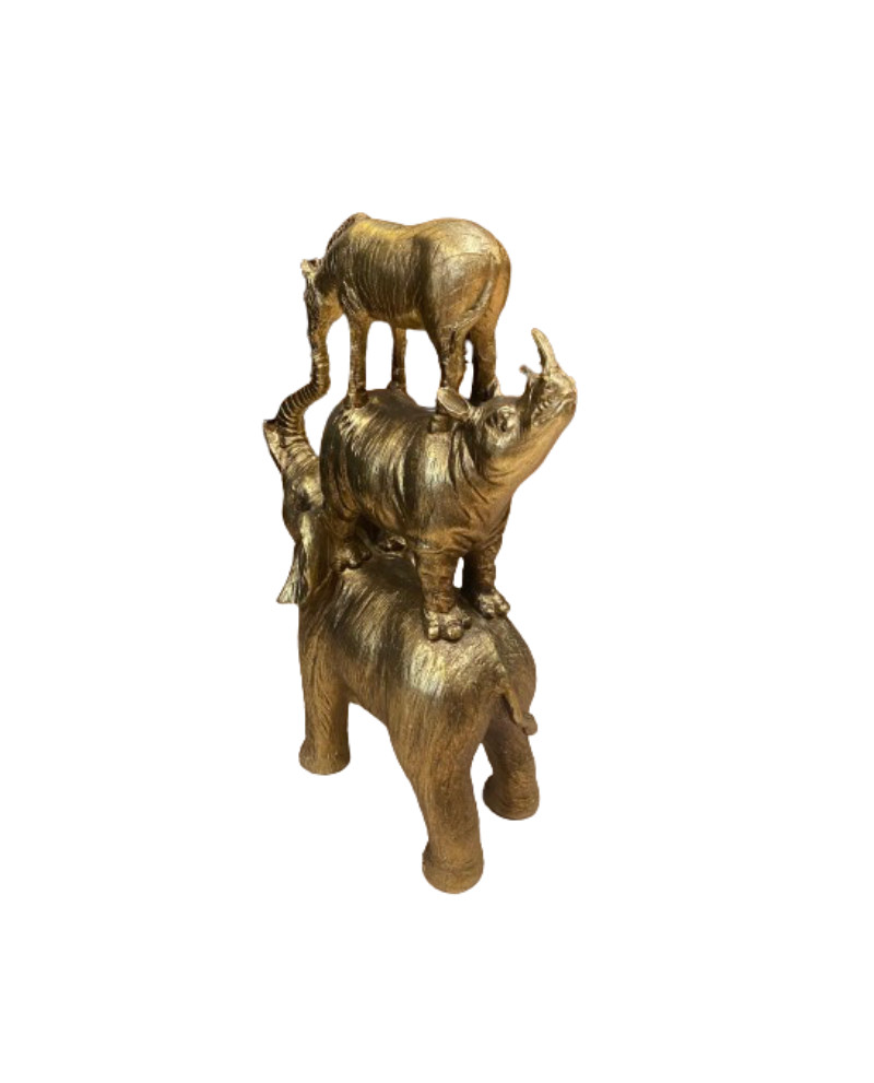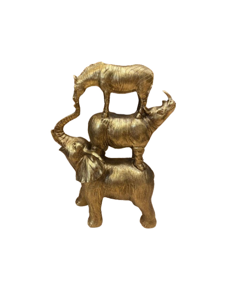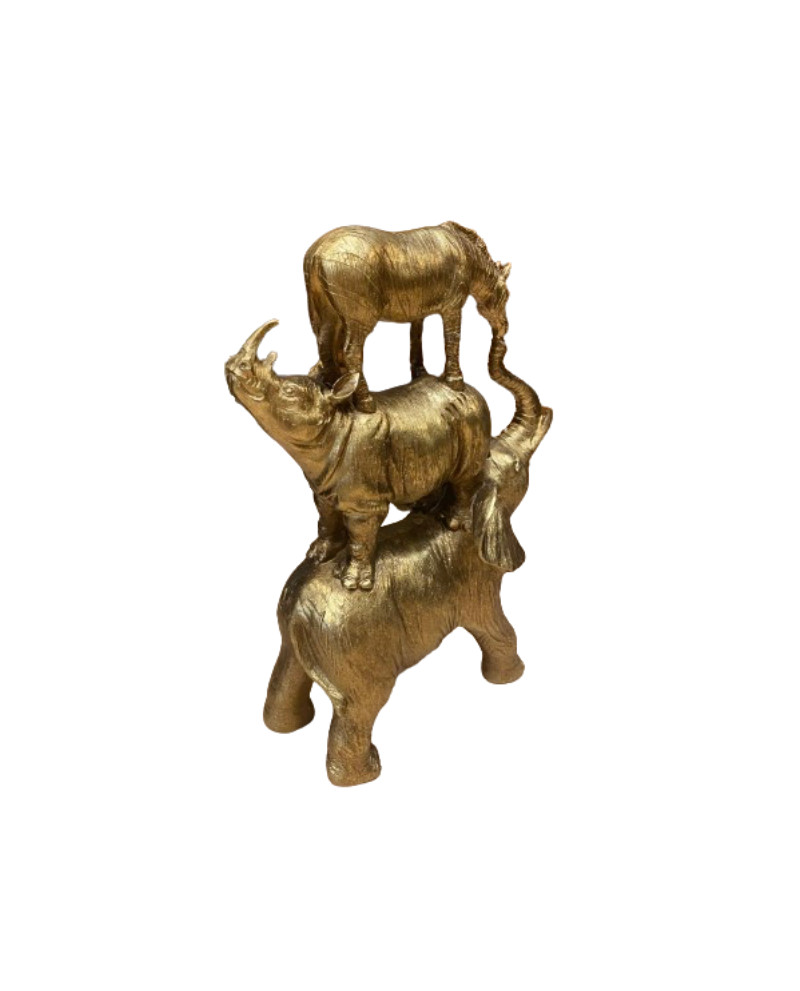 Trio d'animaux en métal, Zèbre, Rhinocéros et Éléphant.
