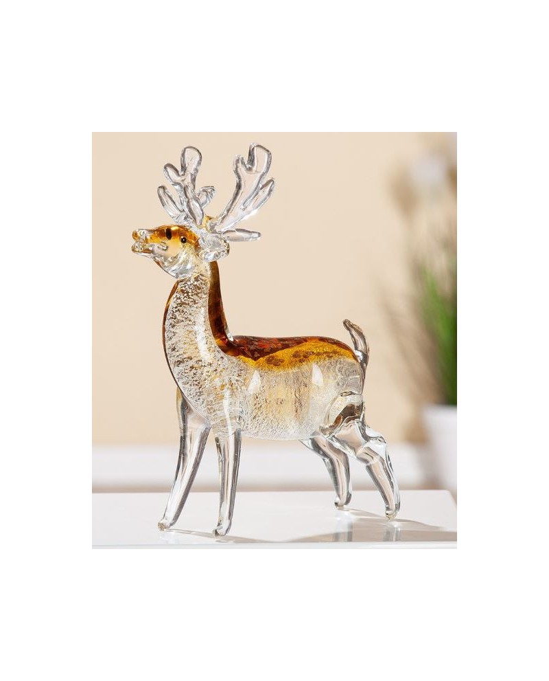 Cerf en verre soufflé bouche teinté dans la masse, le mouvement des couleurs dans le verre varient légèrement à chaque fabrication ce qui en fait une pièce "unique".