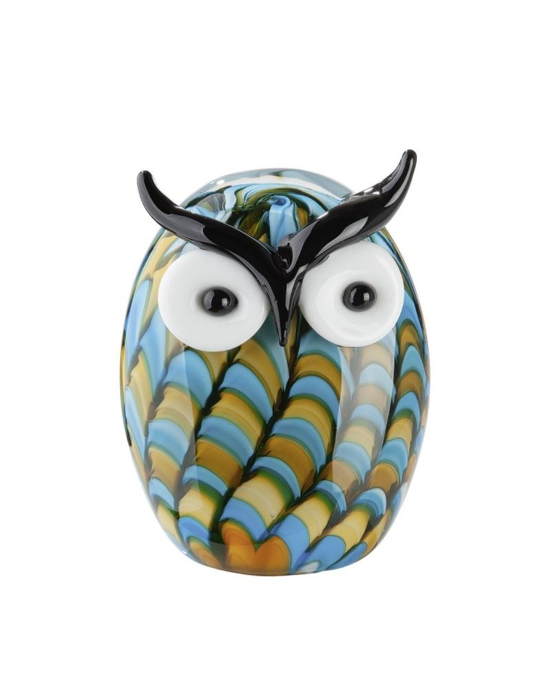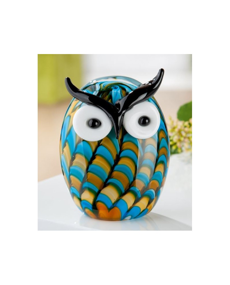 Hibou en verre soufflé bouche teinté dans la masse, le mouvement des couleurs dans le verre varient légèrement à chaque fabrication ce qui en fait une pièce "unique".