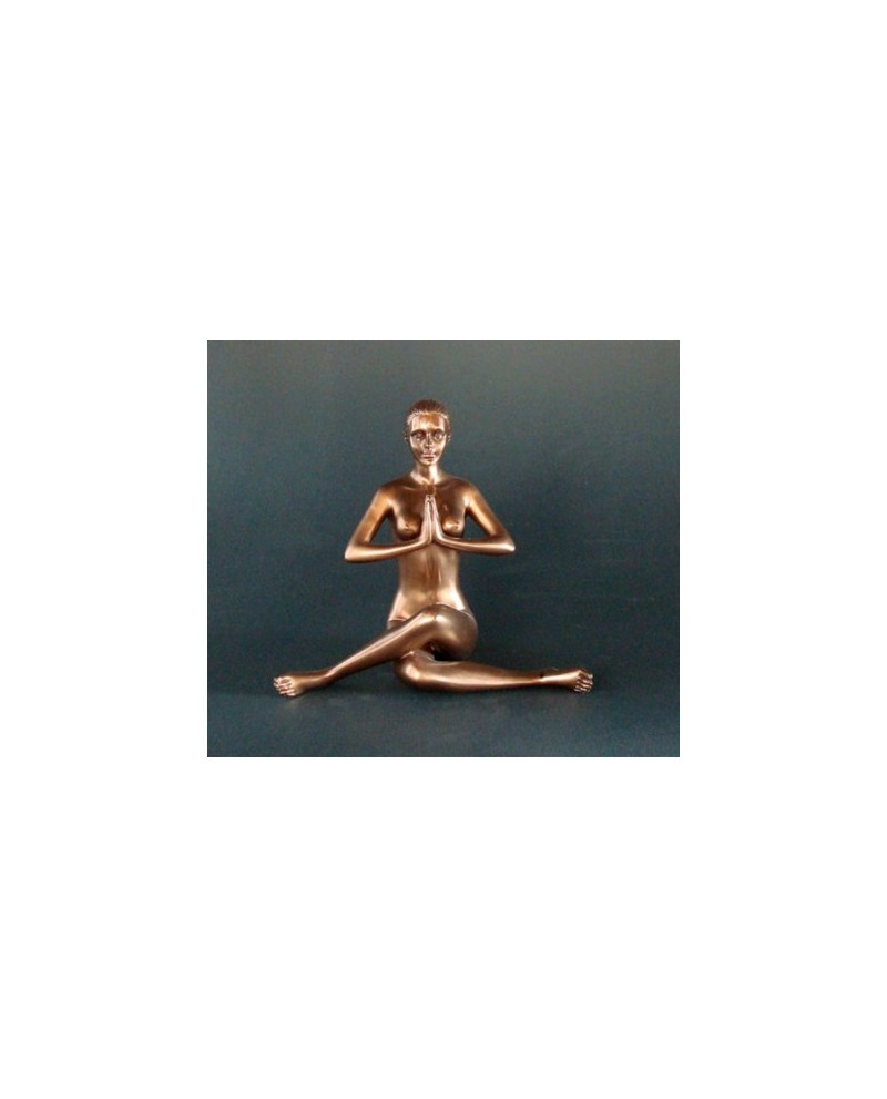Elégante statuette pose "Salutation Seal" en résine patine bronze H 14 cm.