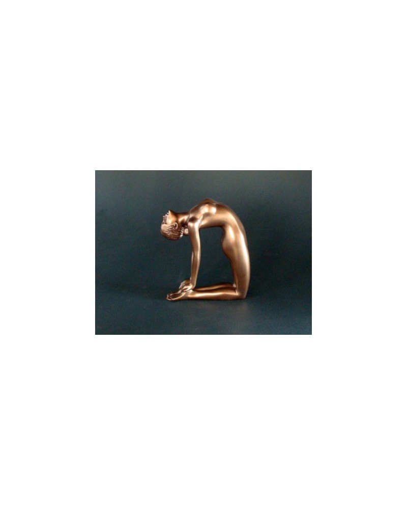 Elégante statuette pose "Camel Pose" en résine patine bronze H 13 cm.