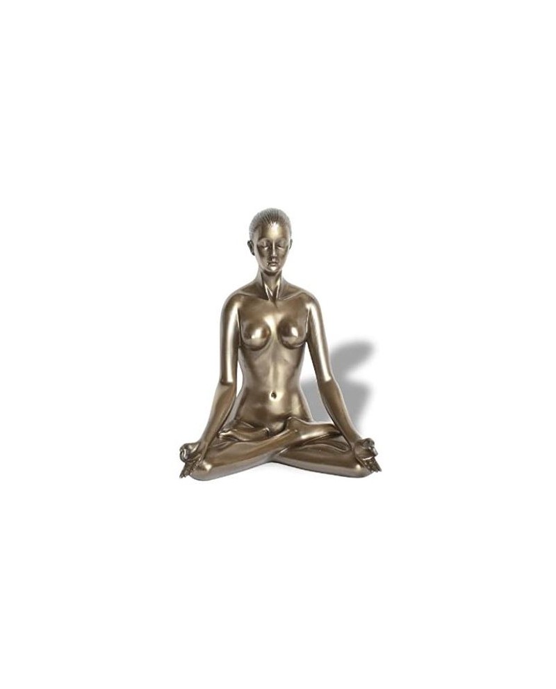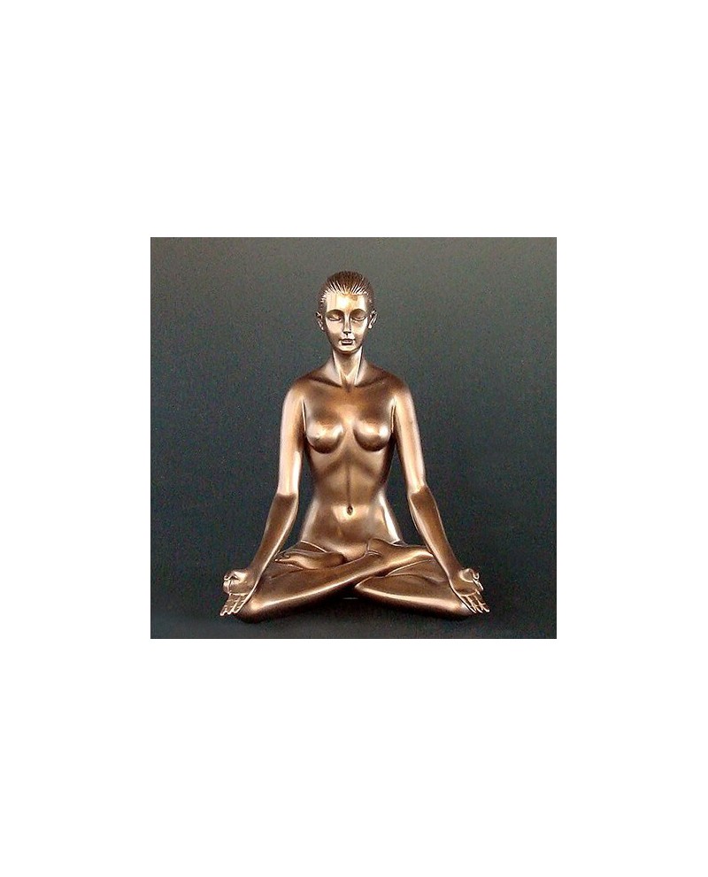 Elégante statuette pose "Lotus" en résine patine bronze H 14 cm.