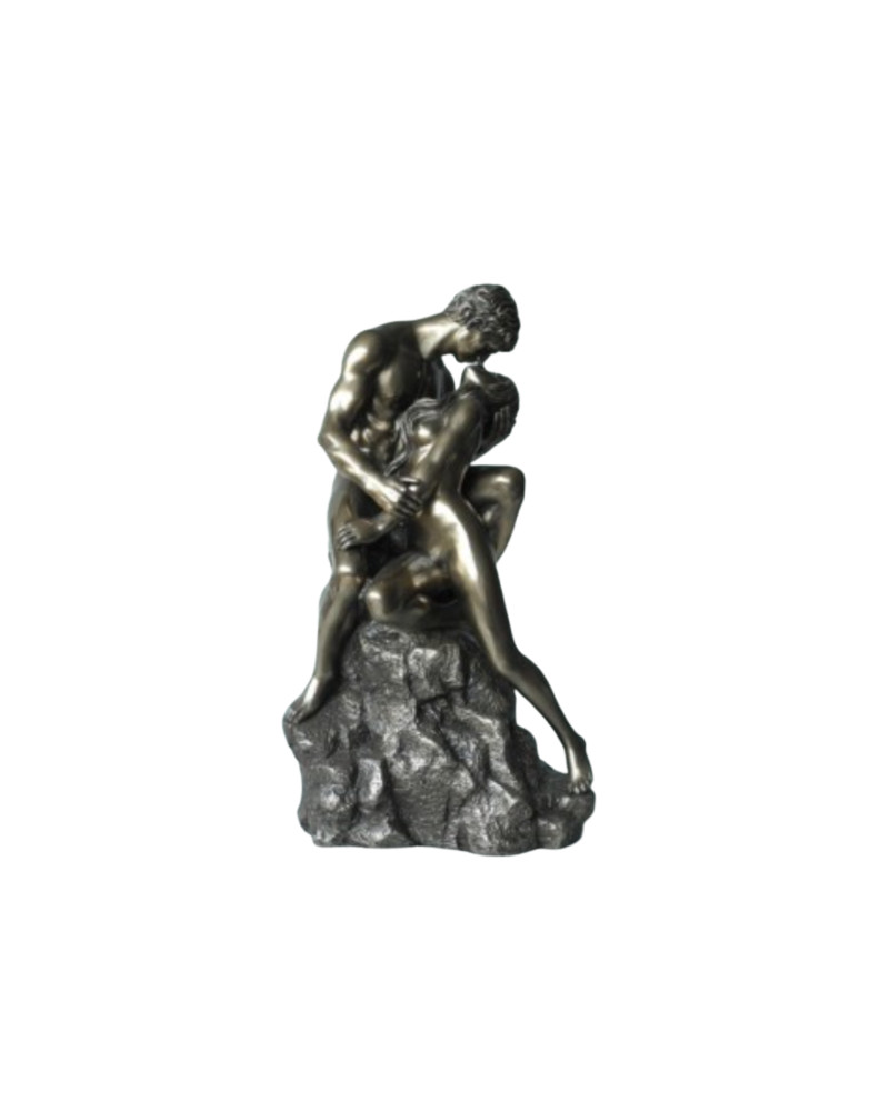Elégante statuette couple en résine patine bronze H 27 cm.
