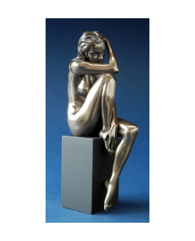 Elégante statuette pose de nue sur socle en résine patine bronze H 21 cm.