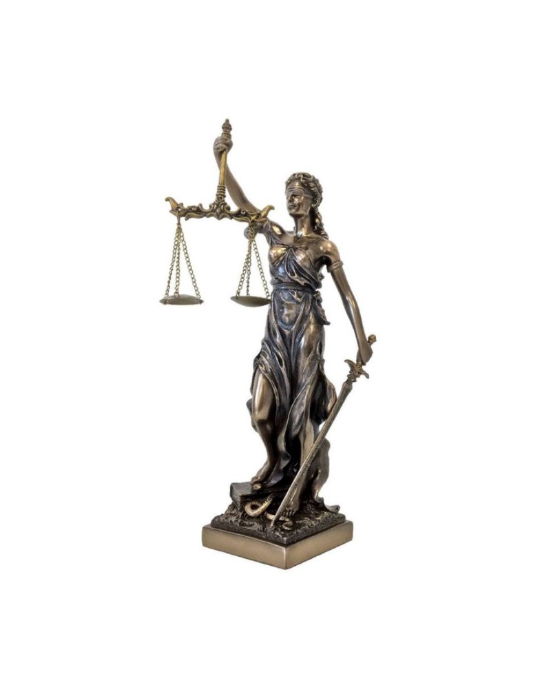 Elégante statuette de la Justice en résine patine bronze H 31 cm.