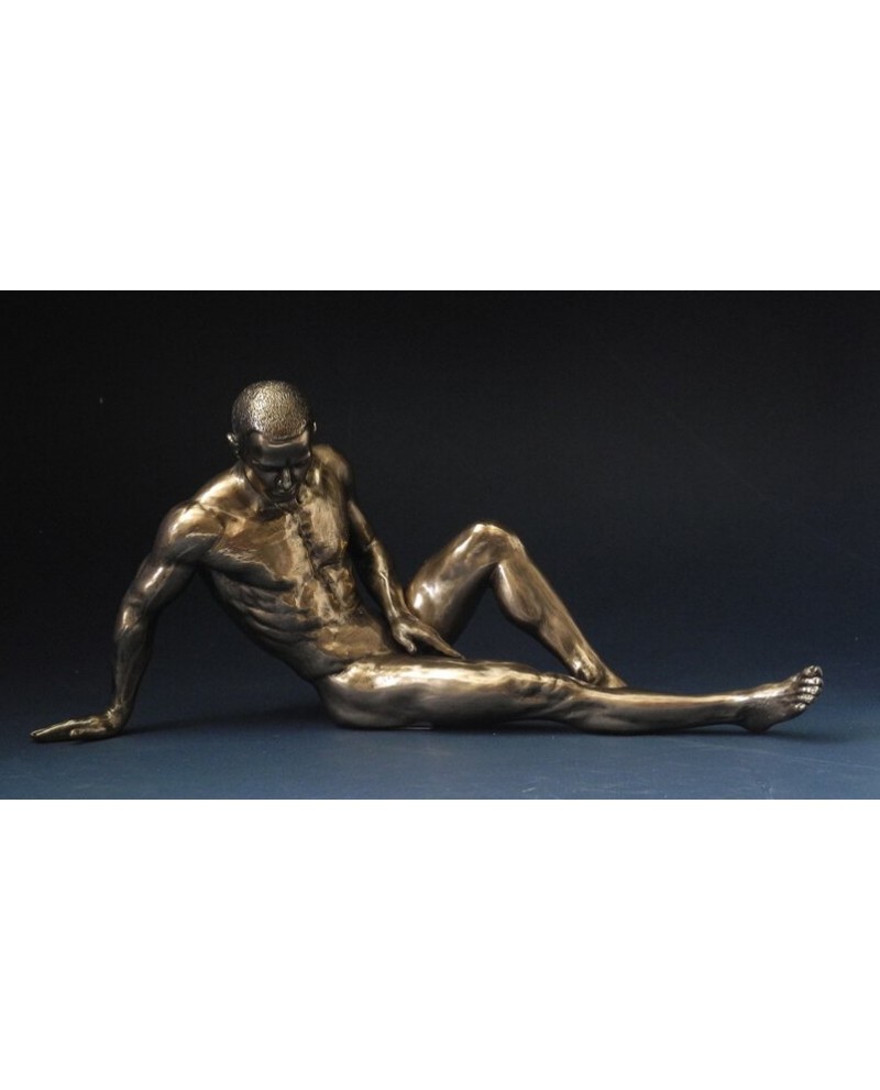 Elégante statuette pose homme nu en résine patine bronze H12 x L27 cm.