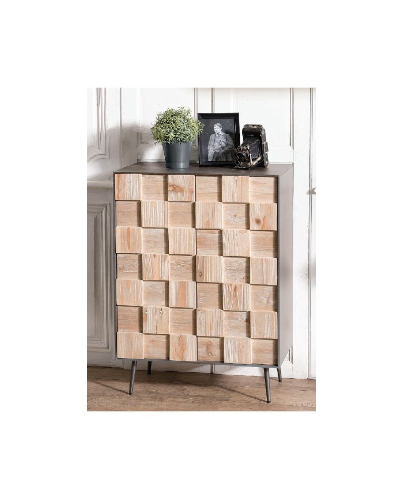 Buffet en sapin et MDF, pieds métal. 2 portes, 1 étagère.