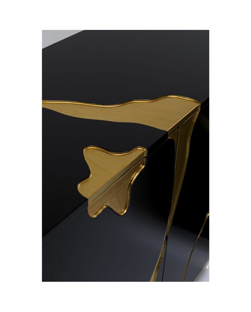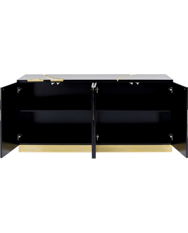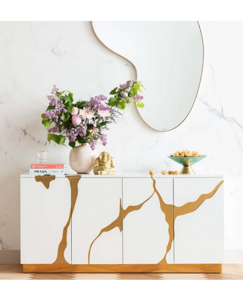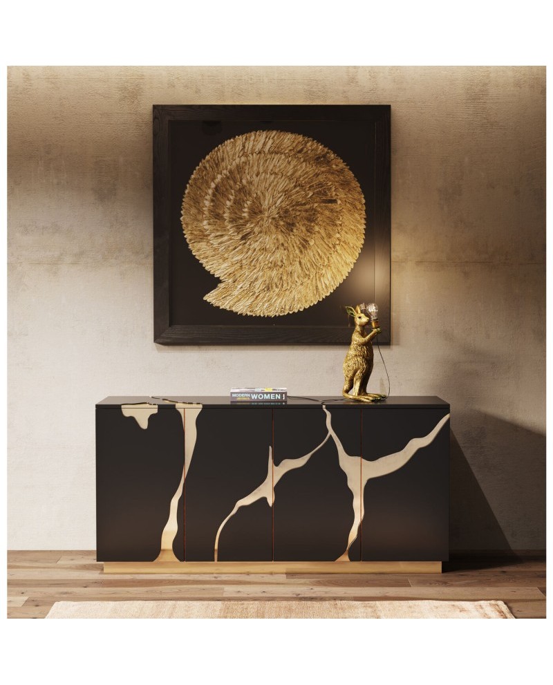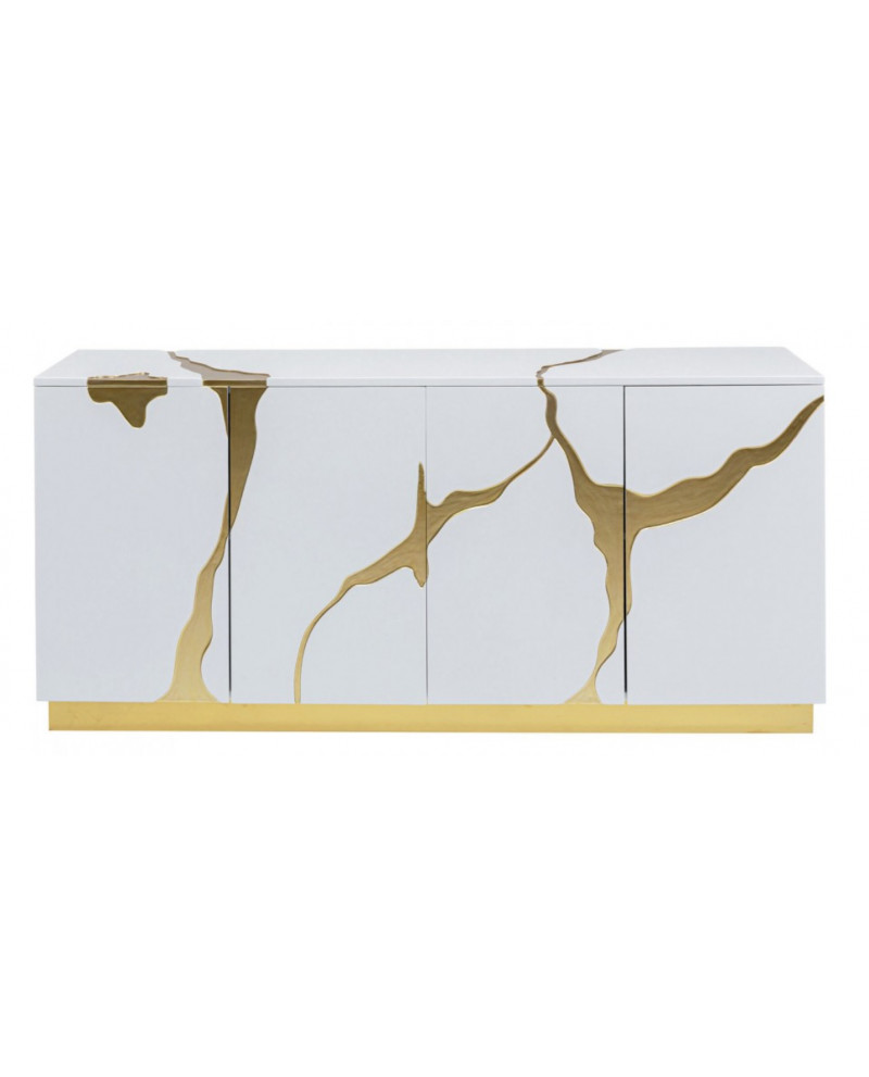 Elégant et glamour, ce buffet apportera du style à votre intérieur avec sa structure décorée de détails dorés creusés dans la façade et le plateau. Les portes s'ouvrent d'une pression sur deux grands rangements avec étagère centrale ajustable.