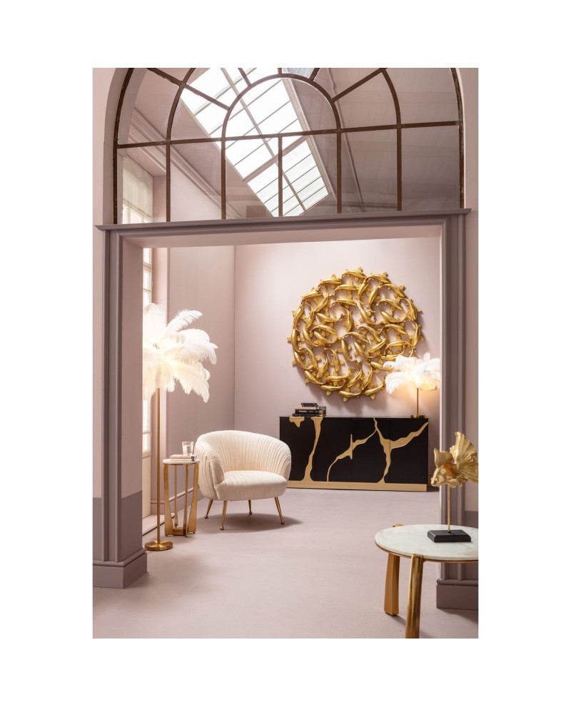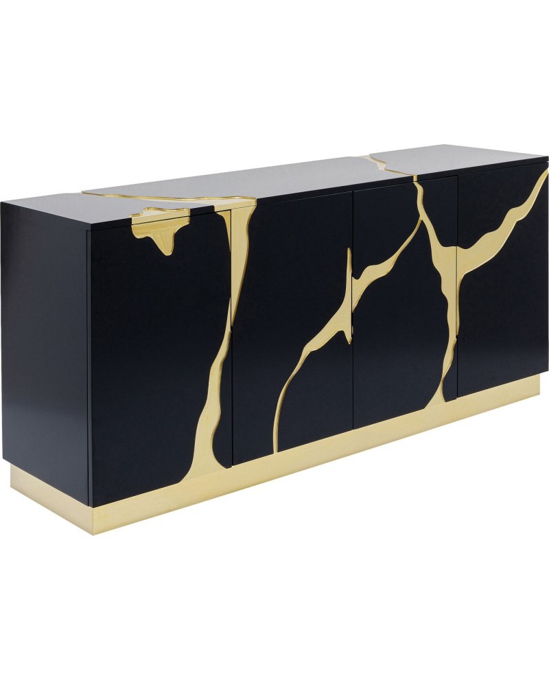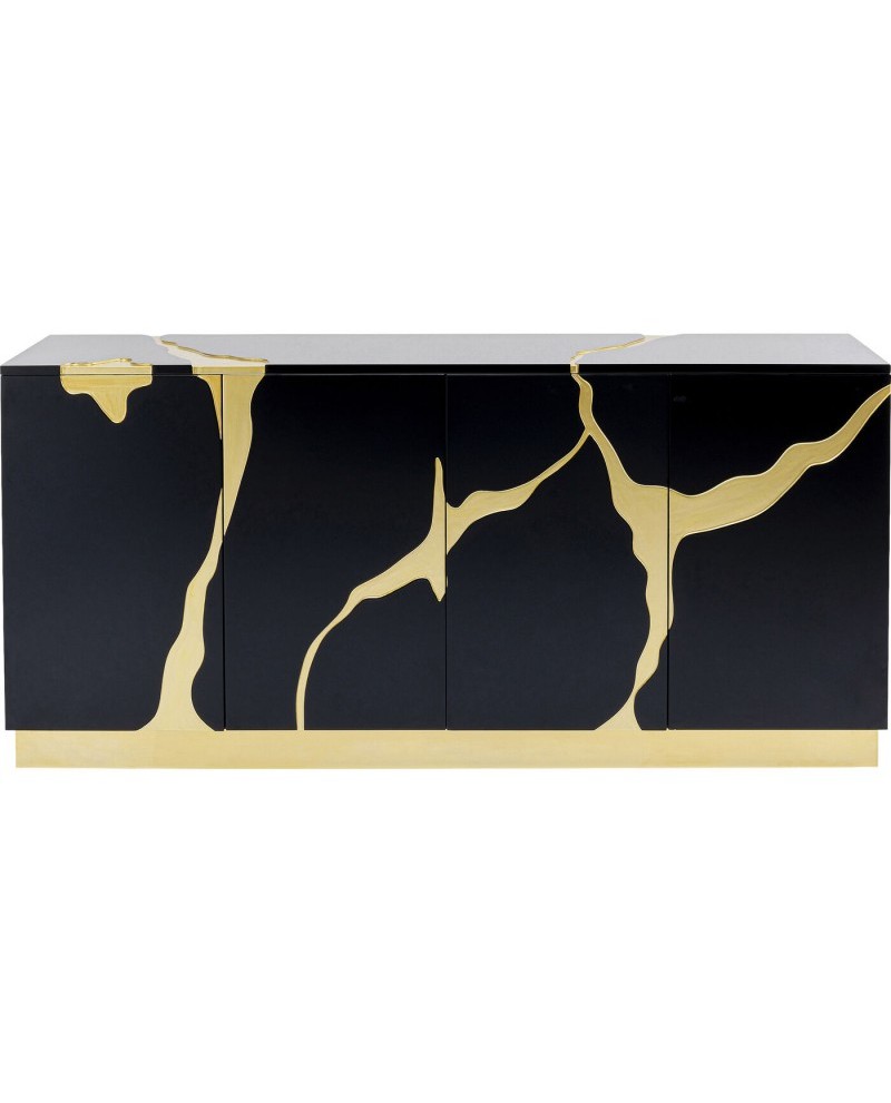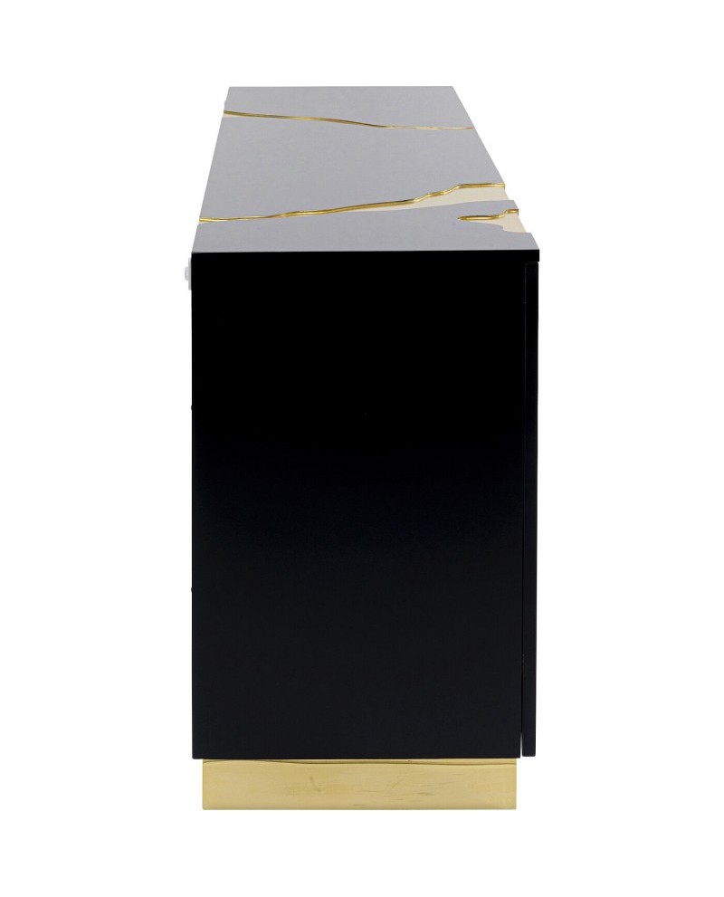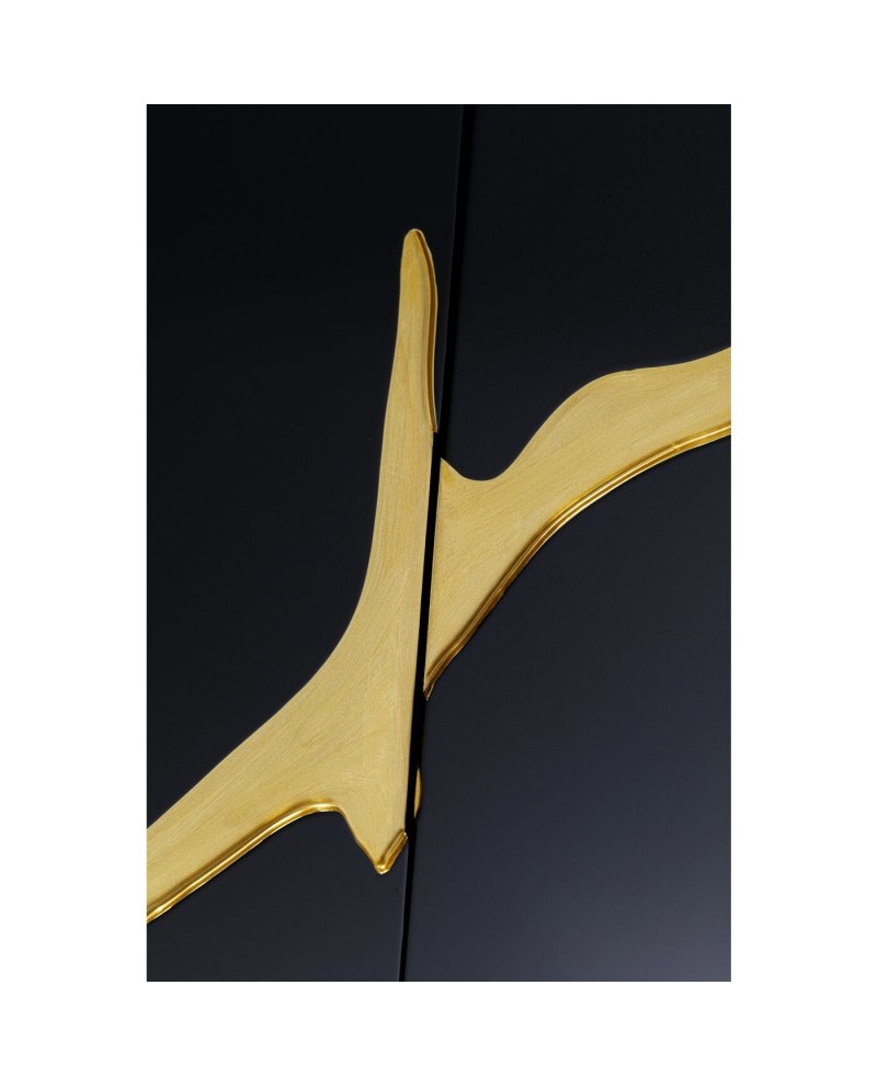 Elégant et glamour, ce buffet apportera du style à votre intérieur avec sa structure décorée de détails dorés creusés dans la façade et le plateau. Les portes s'ouvrent d'une pression sur deux grands rangements avec étagère centrale ajustable.