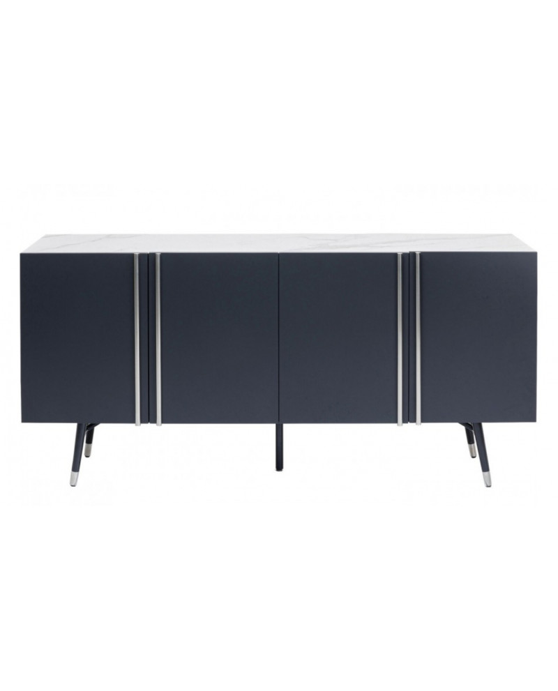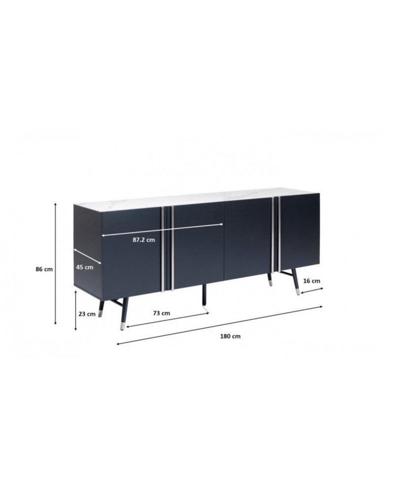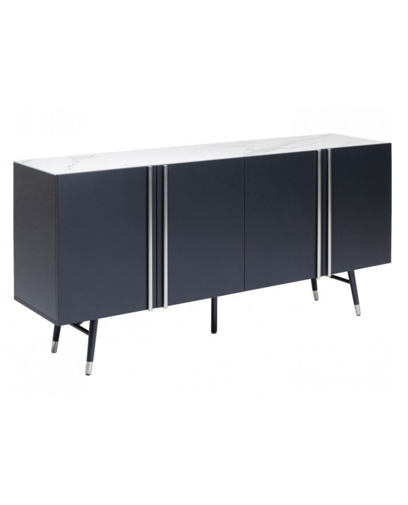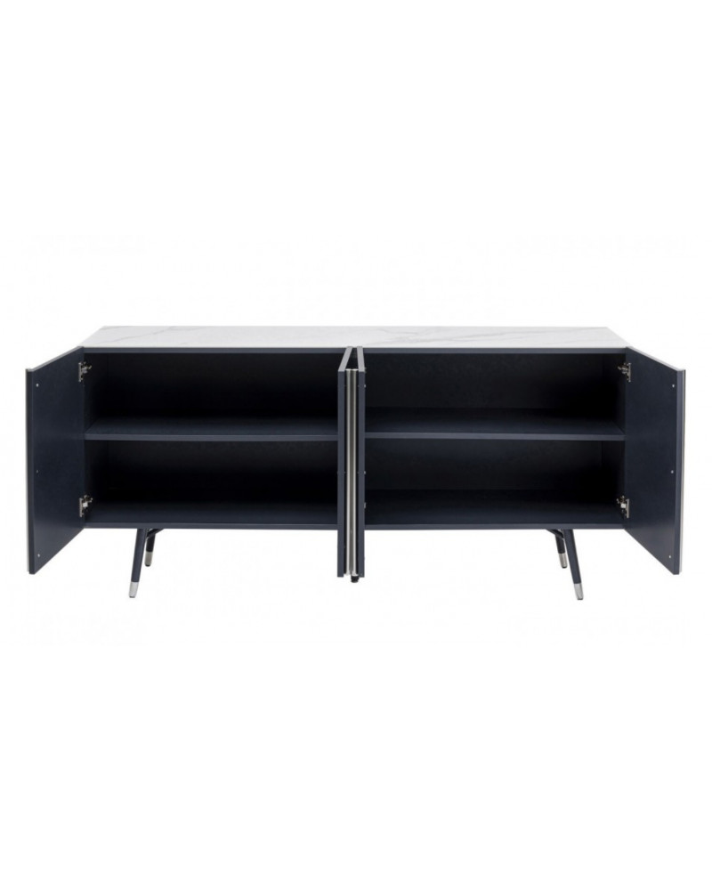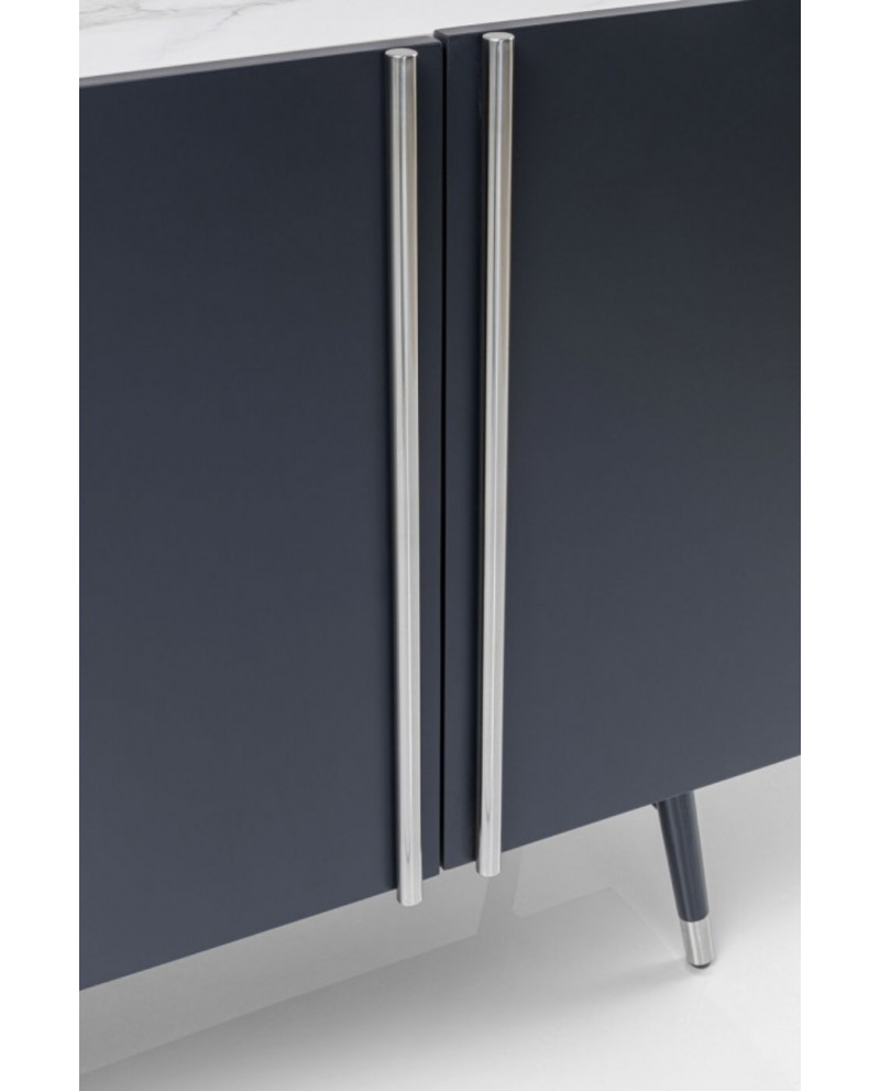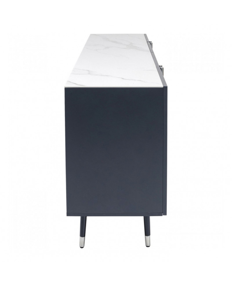 Ce buffet moderne gris foncé aux accents argentés et au plateau en verre effet marbre a été conçu en exclusivité par le designer danois Morten Georgsen. Chaque jeu de portes s'ouvre sur un grand compartiment de rangement avec étagère ajustable.