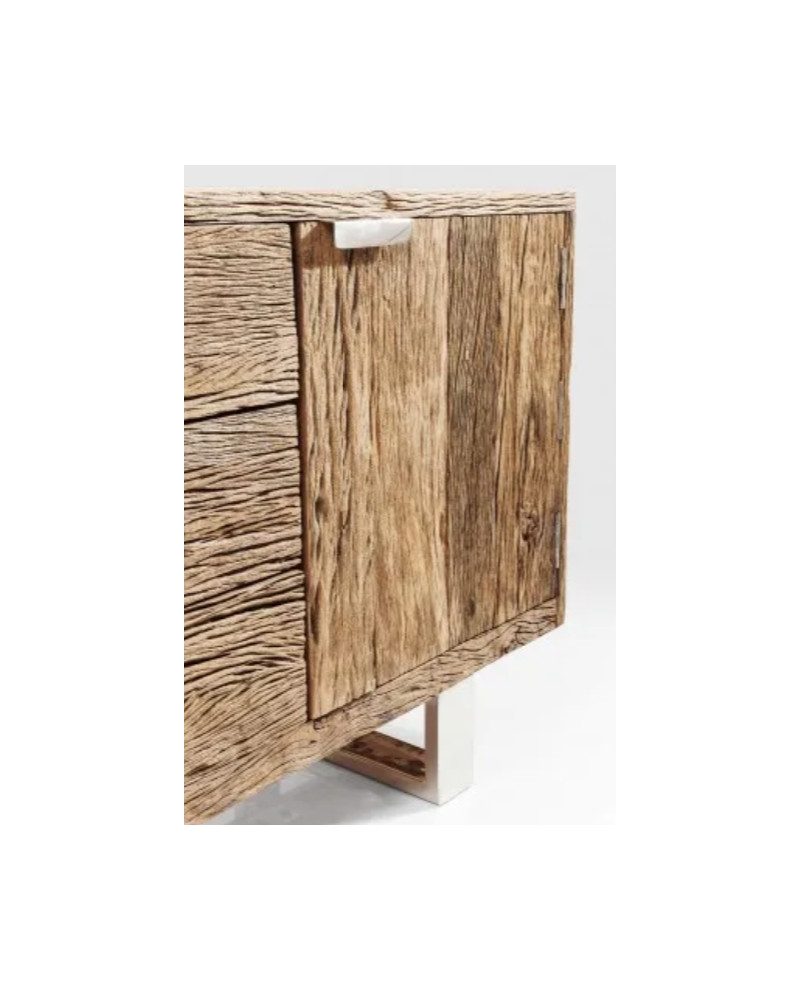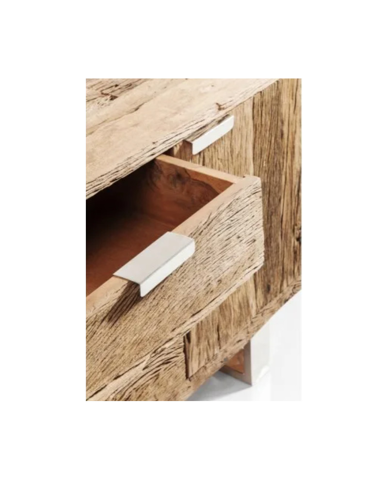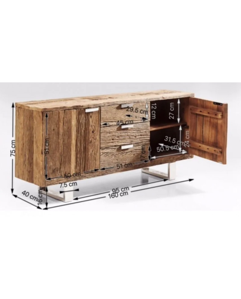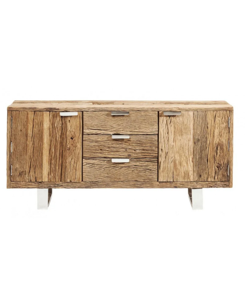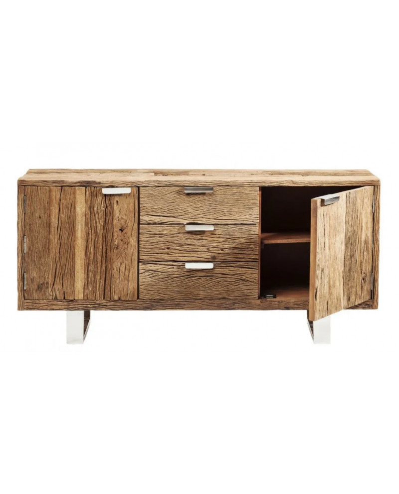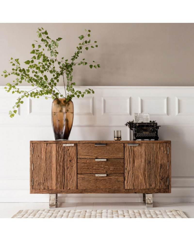 Ce meuble en enfilade, composé de bois recyclé et d'acier poli, égayera votre intérieur et apportera à lui seul, une touche brute. Avec ses trois grands tiroirs et ses deux placards, il vous offrira également une grande capacité de rangement. À la fois rustique et à l'esprit moderne, ce meuble sera idéal marié à un mur de briques, dans une ambiance au style loft. Il ravira votre pièce principale sans aucune fausse note !