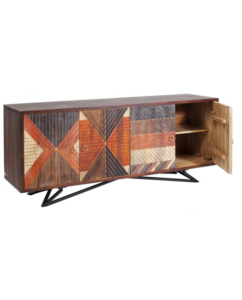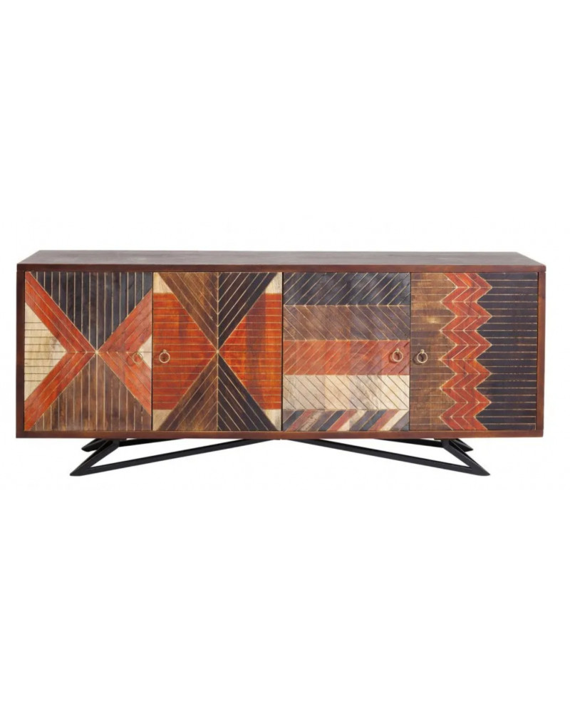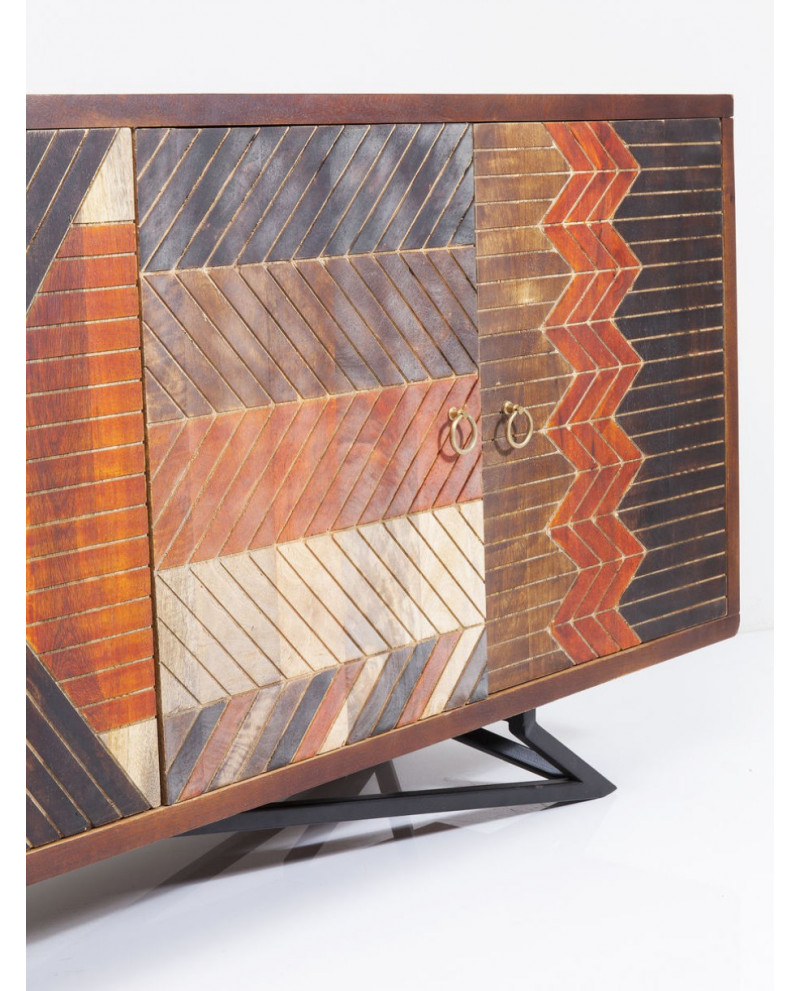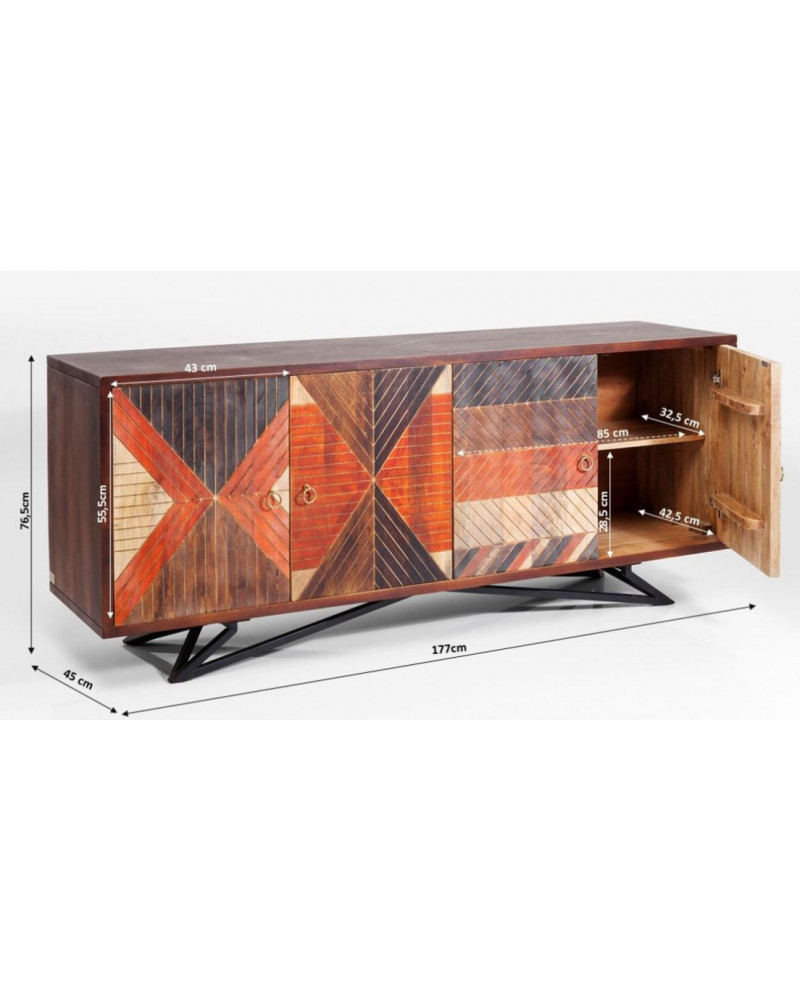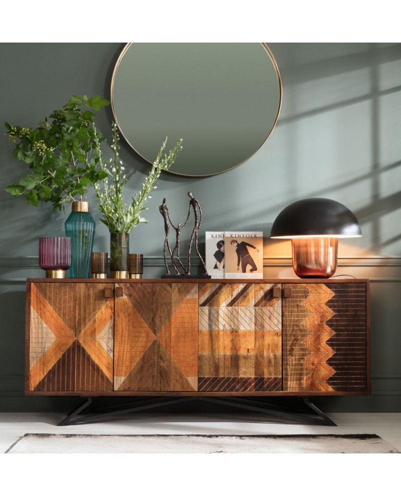 Ce buffet ethnique en bois se verra sublimé dans votre salon. Son esthétique rajoutera une ambiance chaleureuse et exotique à votre intérieur et appellera au bien-être dans un espace boisé et feutré.