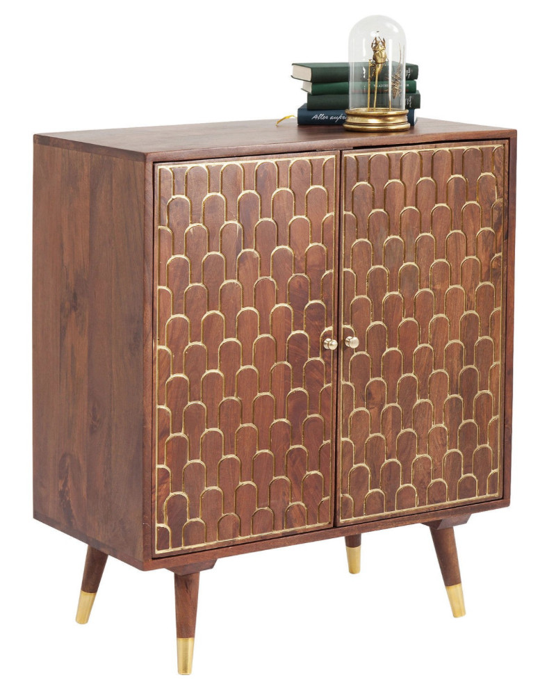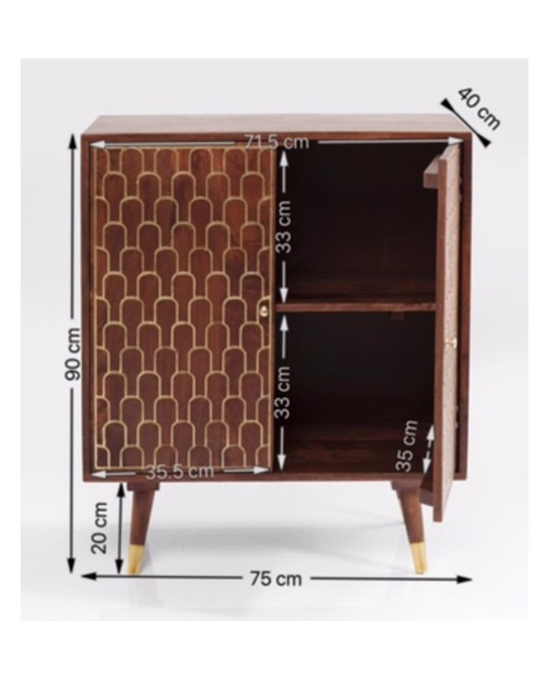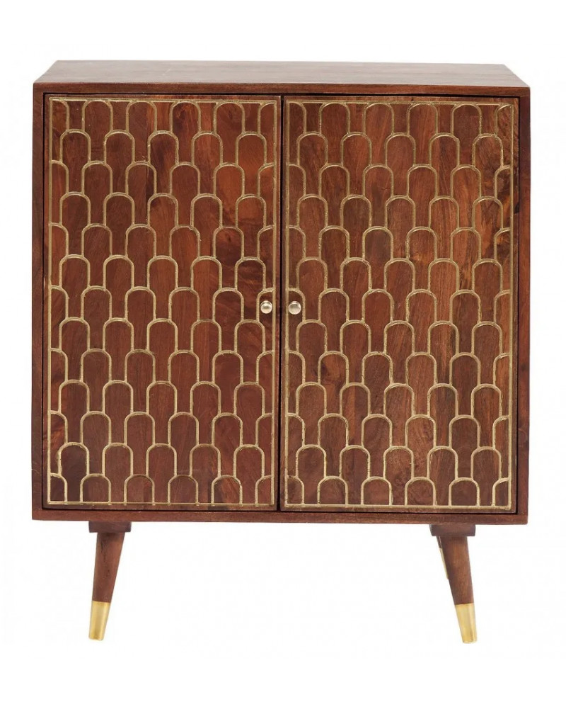 Petit buffet bois & laiton effet rétro & vintage 2 portes