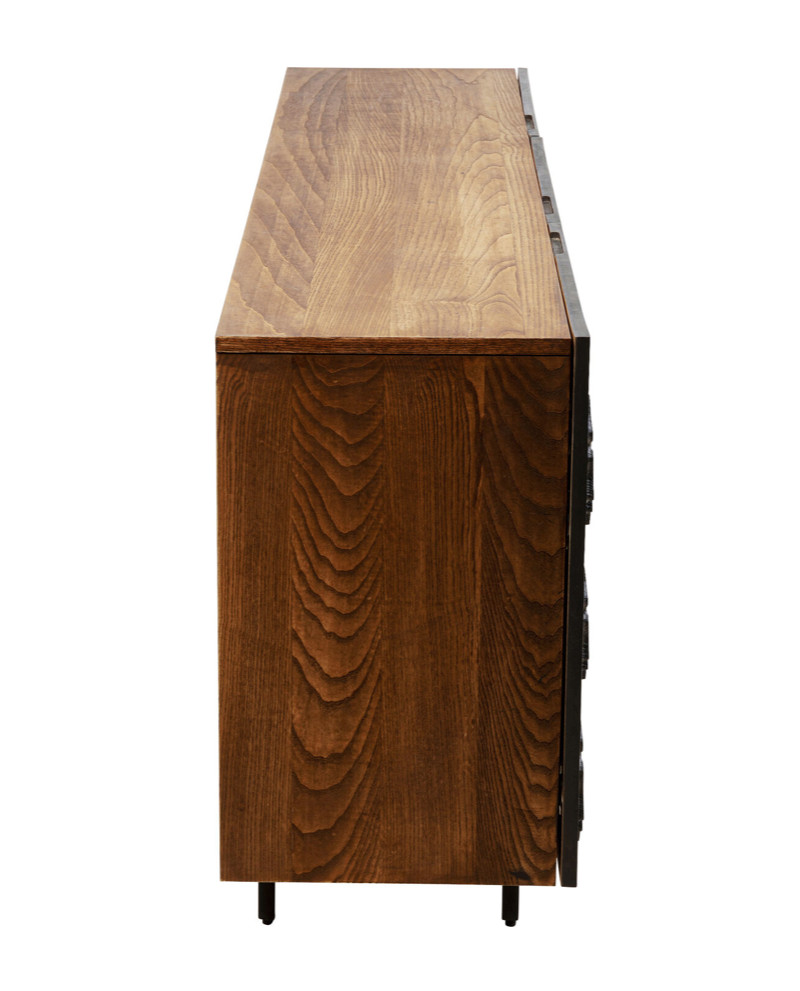 Buffet en bois massif noir et marron, 75 x 160 x 38 centimètres (h/l/p)