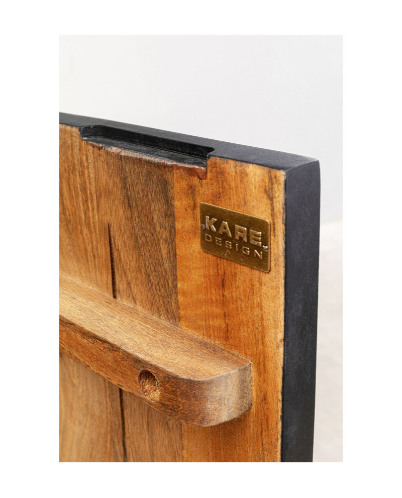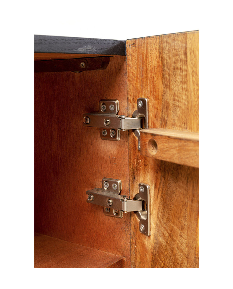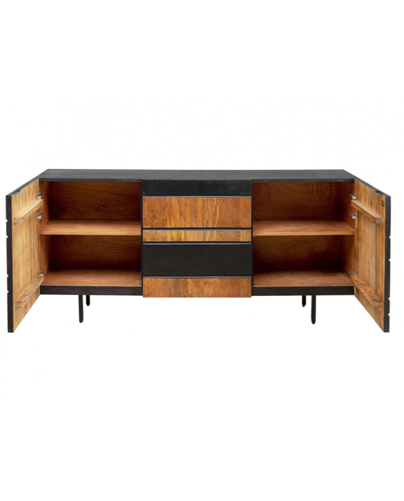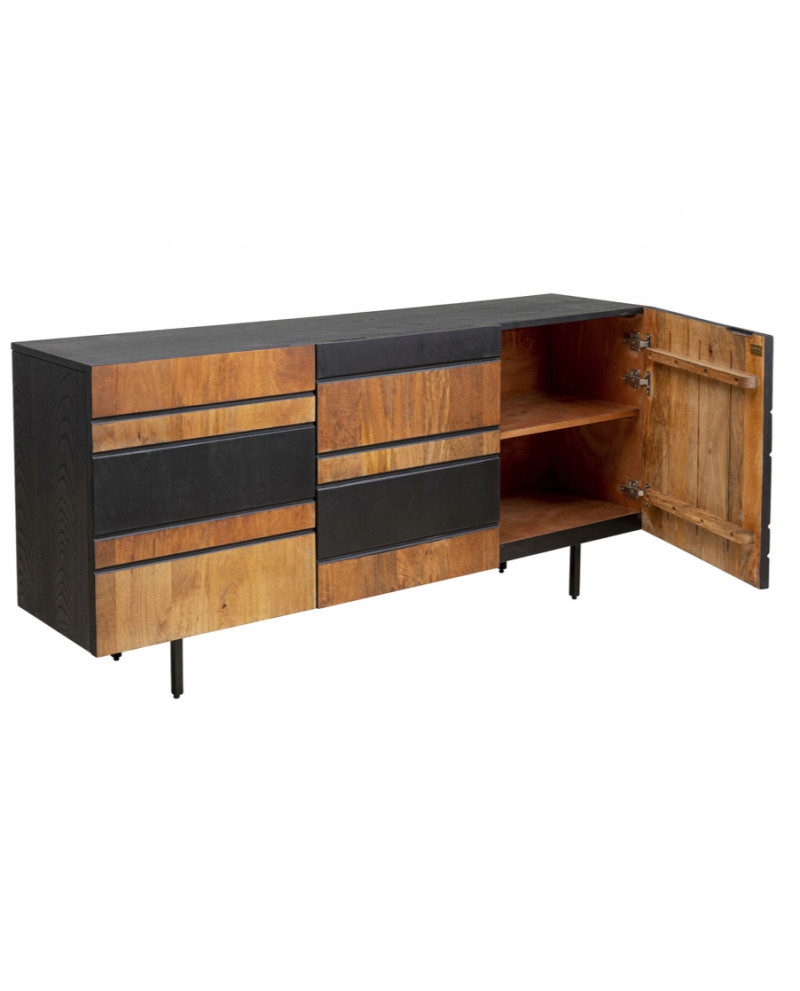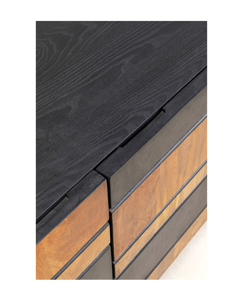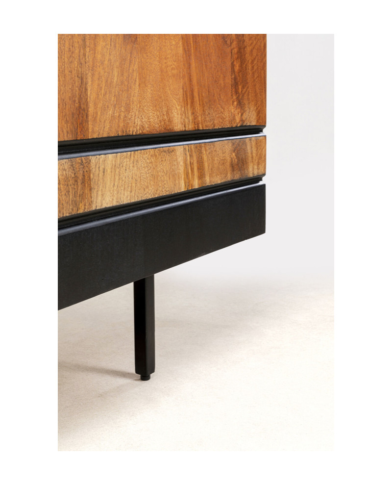 Le sideboard en bois fabriqué à la main est un atout pour chaque salon. Le design remarquable de la façade, avec des parties de couleur naturelle et des parties laquées en noir, confère au meuble un look confortable et moderne. Le sideboard offre suffisamment d'espace de rangement pour les livres, la vaisselle ou les décorations. Avec sa finition de haute qualité et son aspect individuel, le sideboard est un investissement qui s'avère rentable à long terme.