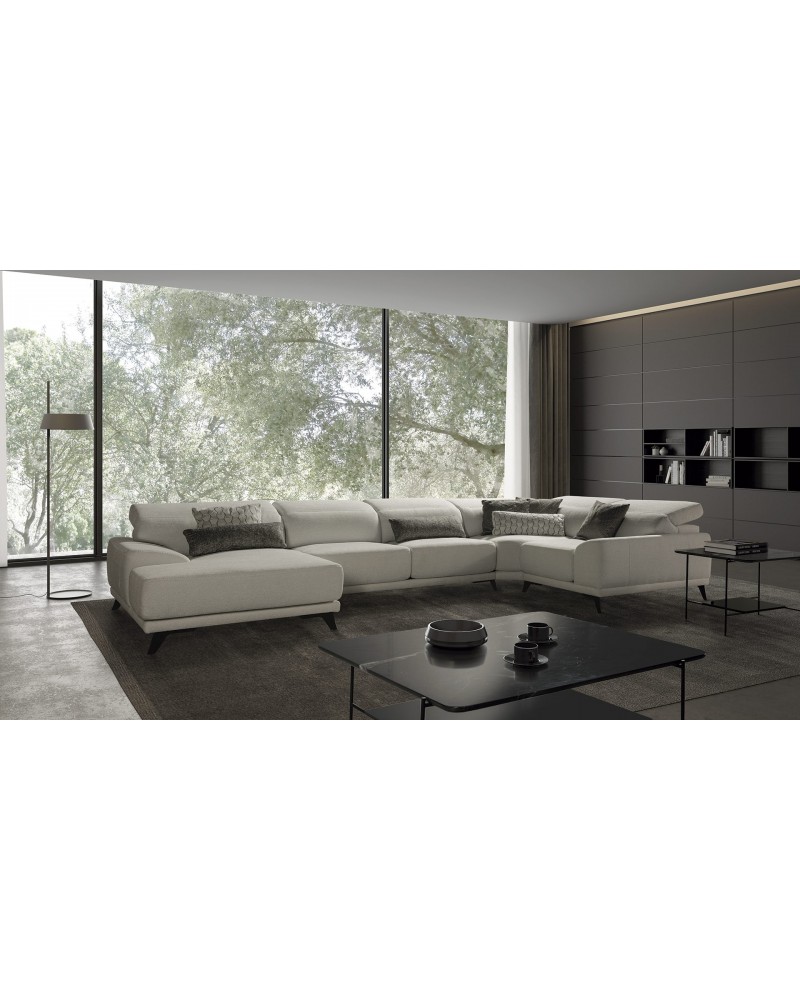 Assises ressorts ensachés, polyurethane 32 kg et fibre creuse vierge siliconée. Dossier polyuréthane soft 16 kg et fibre creuse vierge siliconée.
