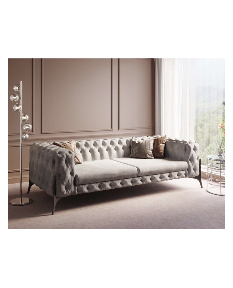 Le revêtement doux aspect velours souligne l'élégance de ce canapé.