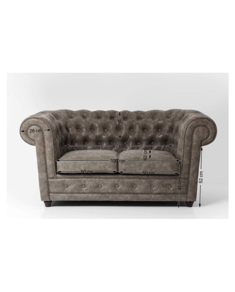 So British ! Canapé 2 places classique de style Chesterfield. Un look vintage très tendance. Très confortable avec ses larges accoudoirs.