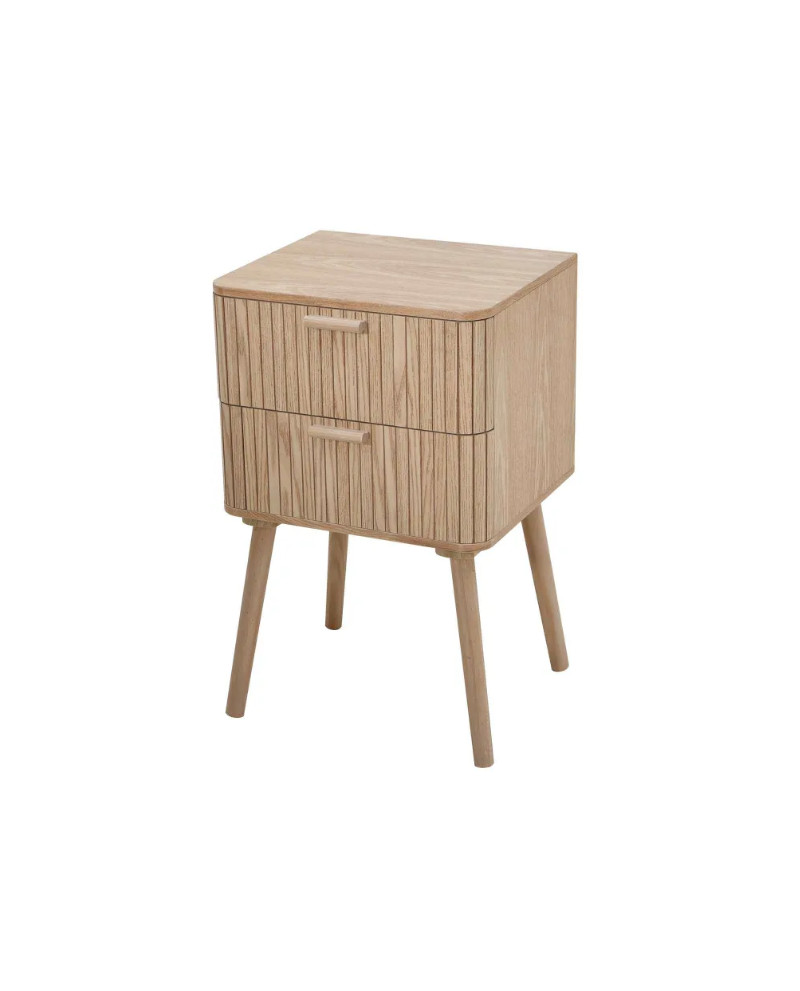 Table de chevet avec deux tiroirs en MDF et bois de pin