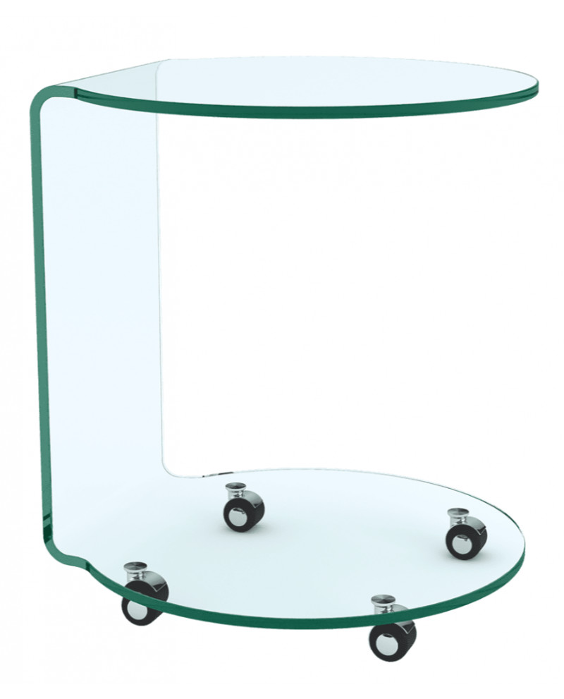 Bout de canapé en verre trempé clair courbé à chaud, épaisseur 12mm.