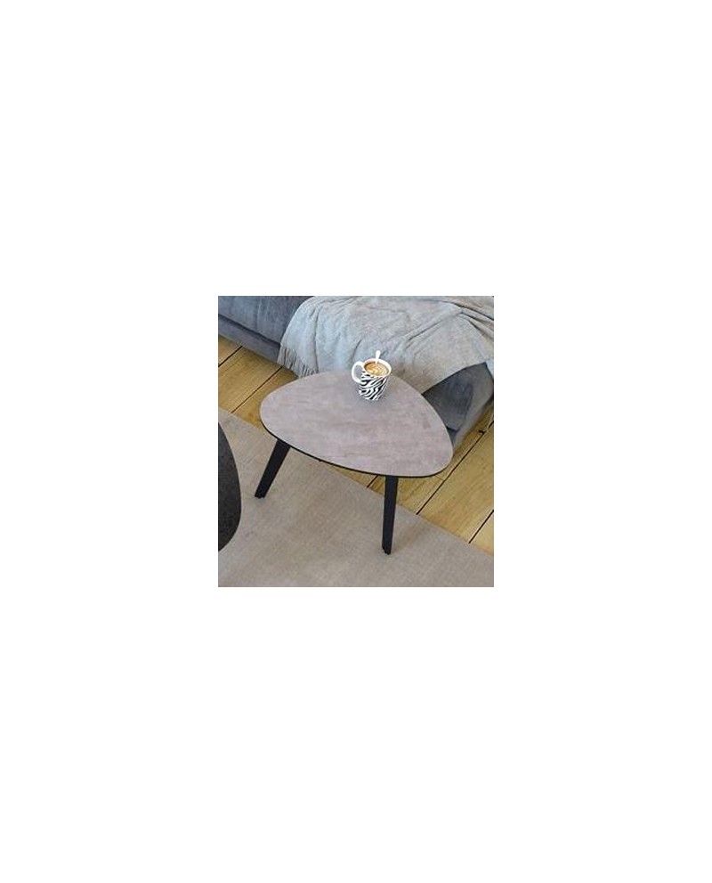 Bout de canapé en céramique décor argile, pieds acier laqué noir mat.