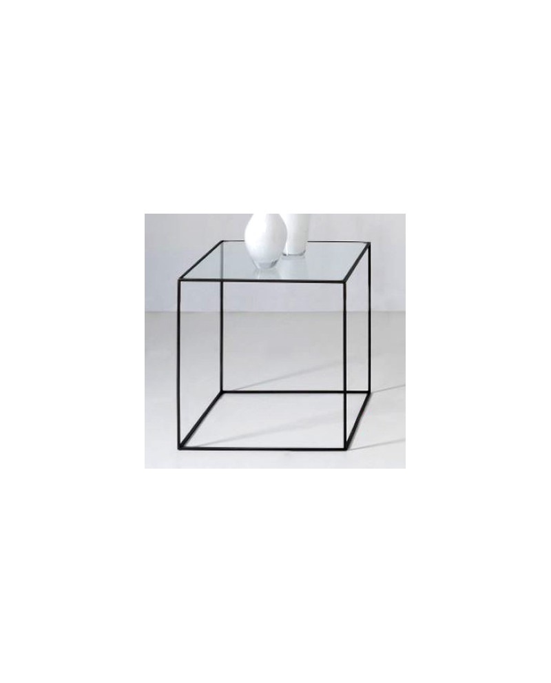 bout de canapé épurée en métal gris anthracite, tablette en verre trempé.