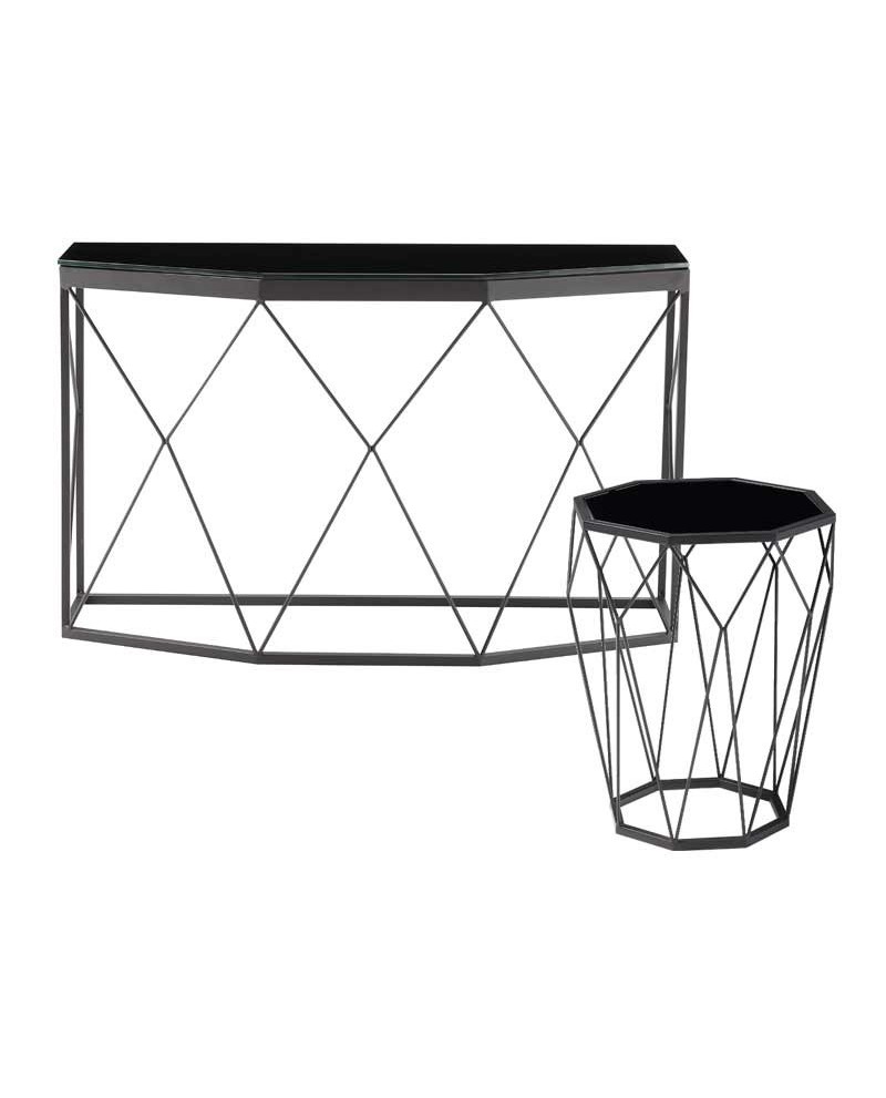 Structure en métal laqué noir, dessus verre noir épaisseur 8mm