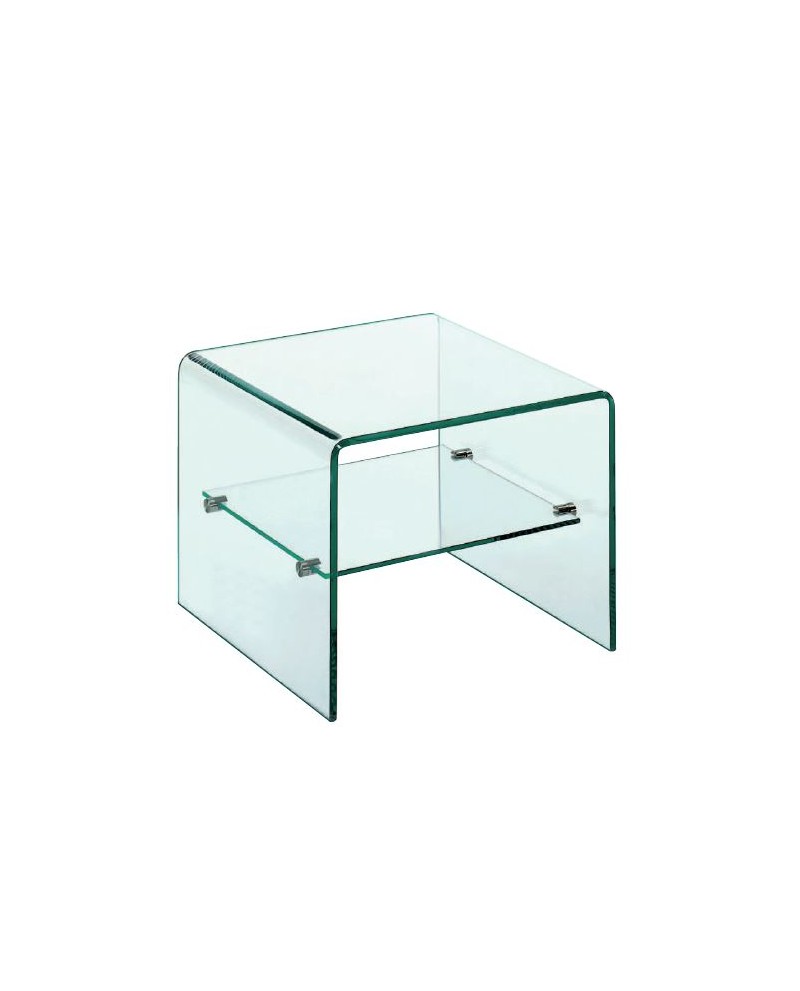 Coin canapé en verre trempé épais. 10mm, 1 étagère fixe.