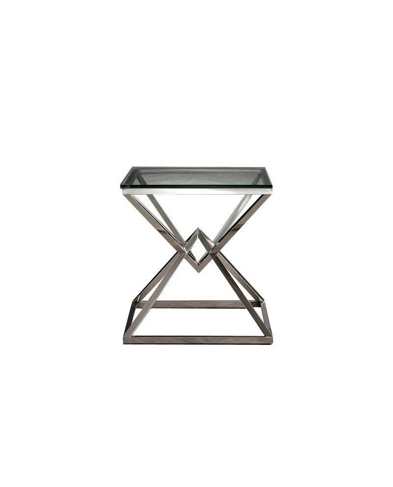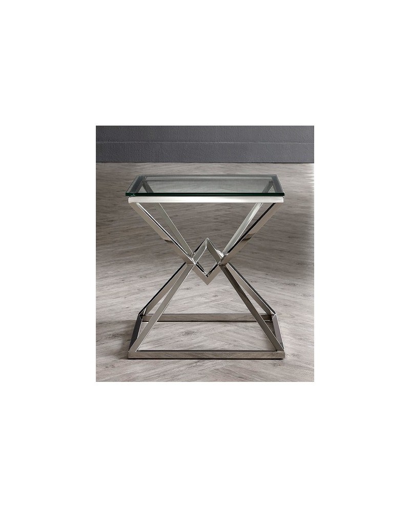 Elégant coin canapé ou table d'appoint piètement acier chromé, plateau verre trempé.