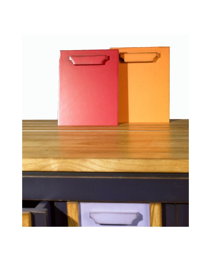 Une collection inspirée des meubles de métier, caractérisée par des lignes sobres et élégantes. Les plaquettes amovibles donnent un éclat gai et coloré et permettent de personnaliser son meuble. Design: Didier Versavel