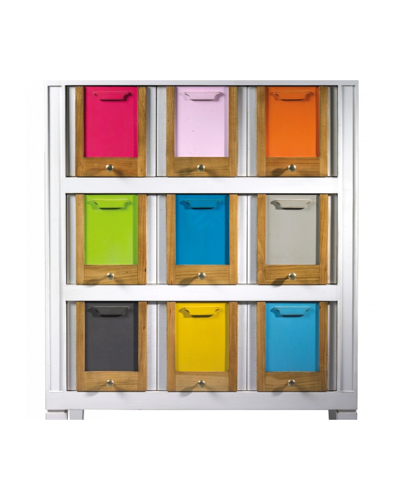 Une collection inspirée des meubles de métier, caractérisée par des lignes sobres et élégantes. Les plaquettes amovibles donnent un éclat gai et coloré et permettent de personnaliser son meuble. Design: Didier Versavel