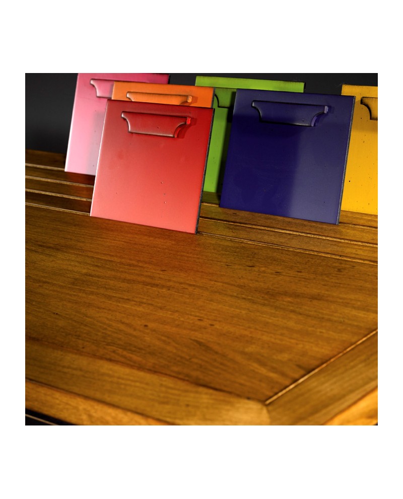 Une collection inspirée des meubles de métier, caractérisée par des lignes sobres et élégantes. Les plaquettes amovibles donnent un éclat gai et coloré et permettent de personnaliser son meuble. Design: Didier Versavel