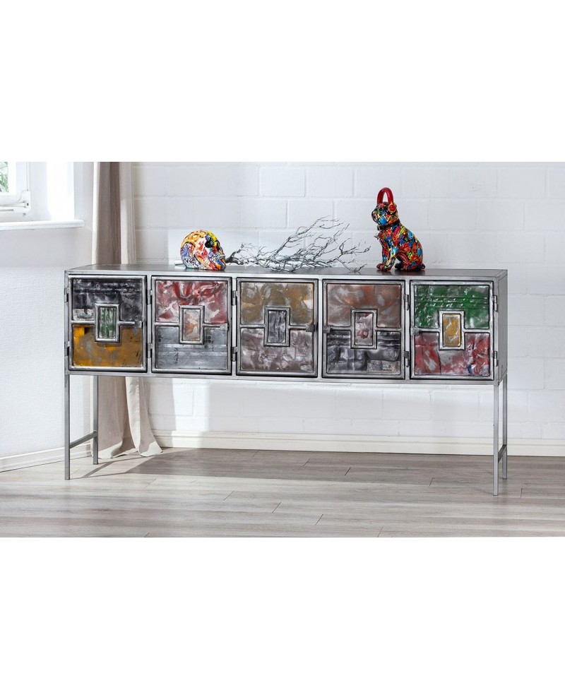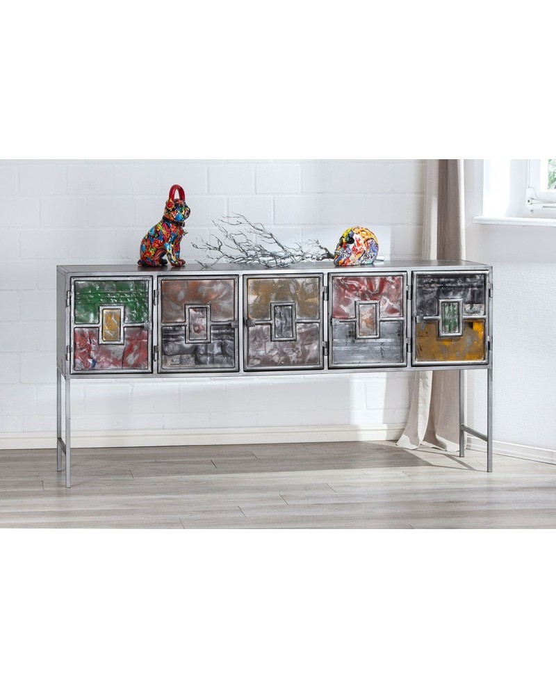 Grande console 5 portes en métal décor Pop Art