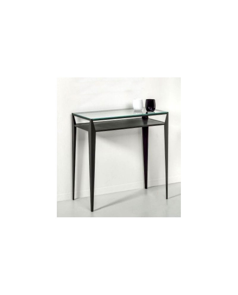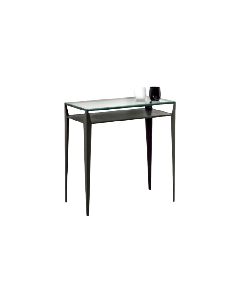 Console Sabre PM épurée en métal gris anthracite, tablette en verre trempé.