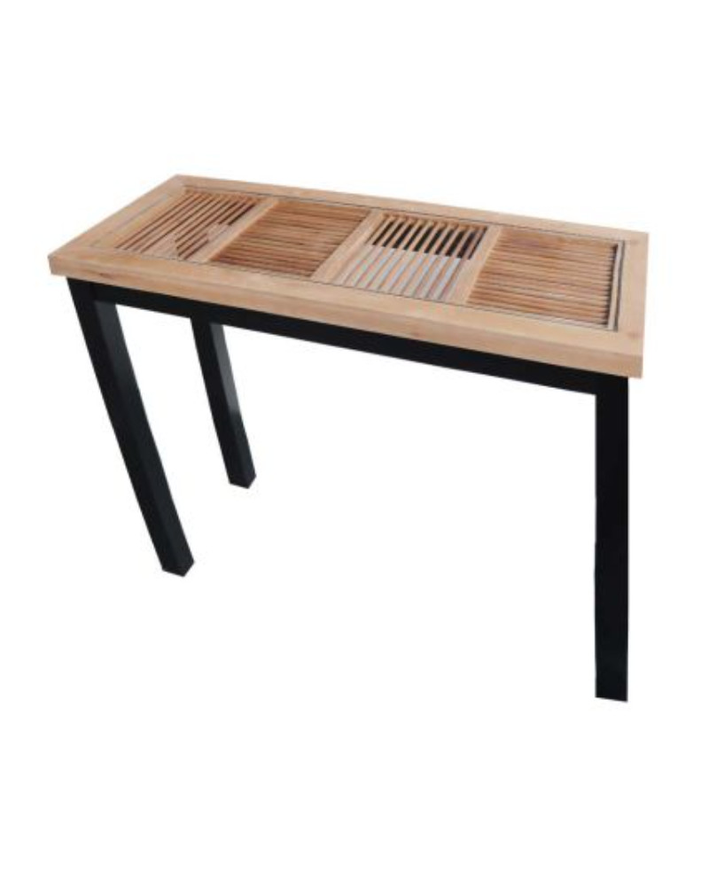 La collection de meubles en bois ORIGINE présente un style classique et naturel qui apportera une touche d'originalité à l'intérieur. Grâce à son plateau en verre trempé, cette console de couleur noire laisse apparaître des tiges de bois en dessous pour un aspect naturel qualitatif. Avez-vous vu la tendance actuelle des bandes de bois sur le mur ? Quel joli rappel avec cette console ! Matériaux : bois médium et verre trempé.