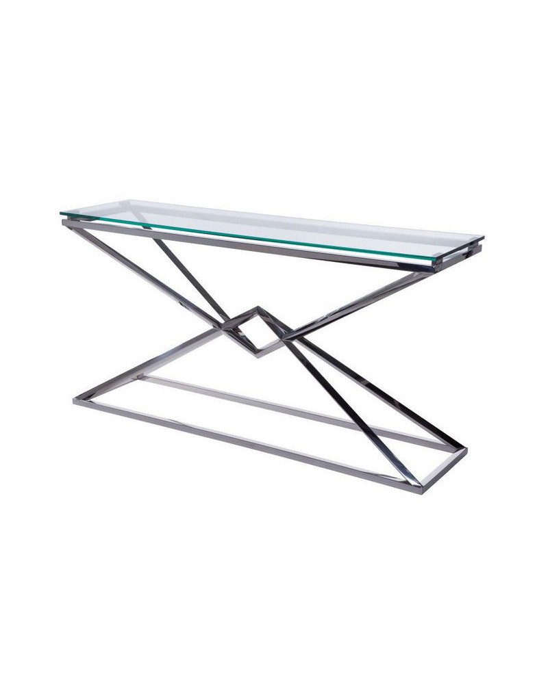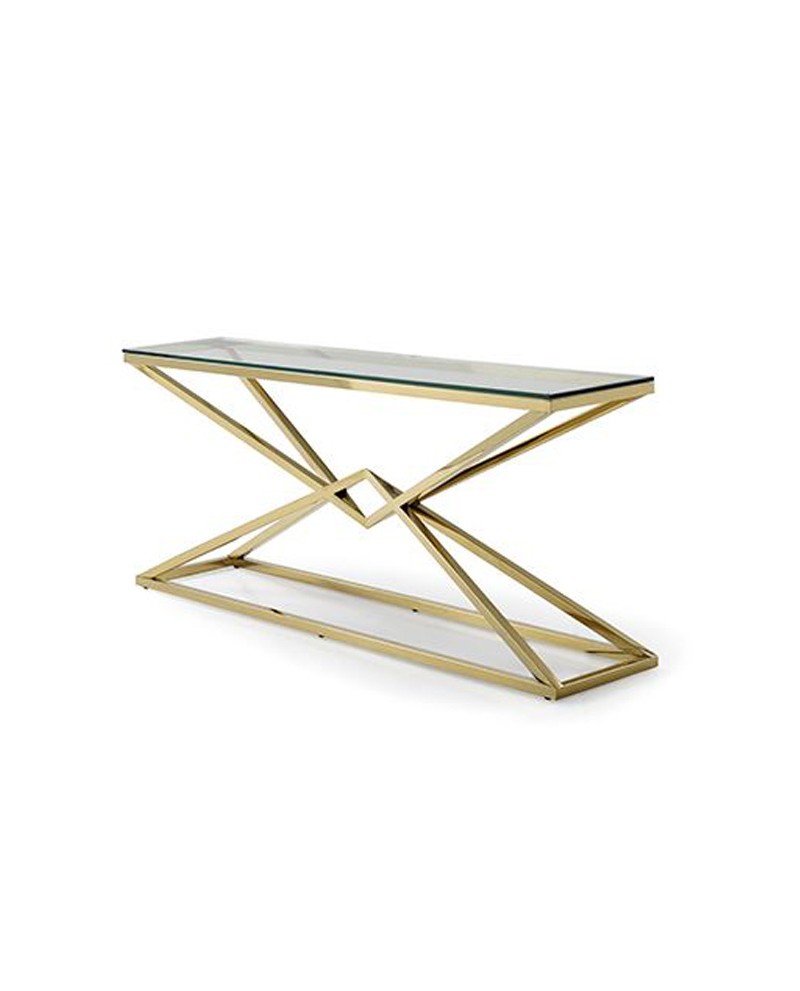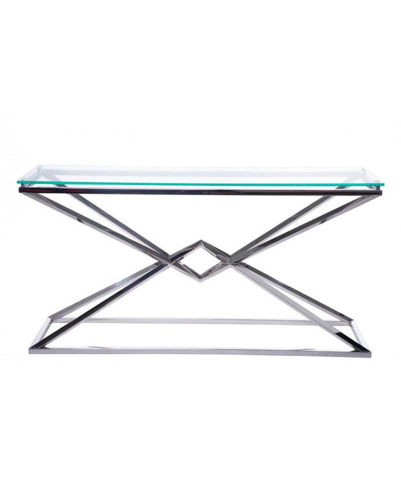 Console LOUXOR en inox poli chromé ou doré et dessus en verre trempé épaisseur 10mm.