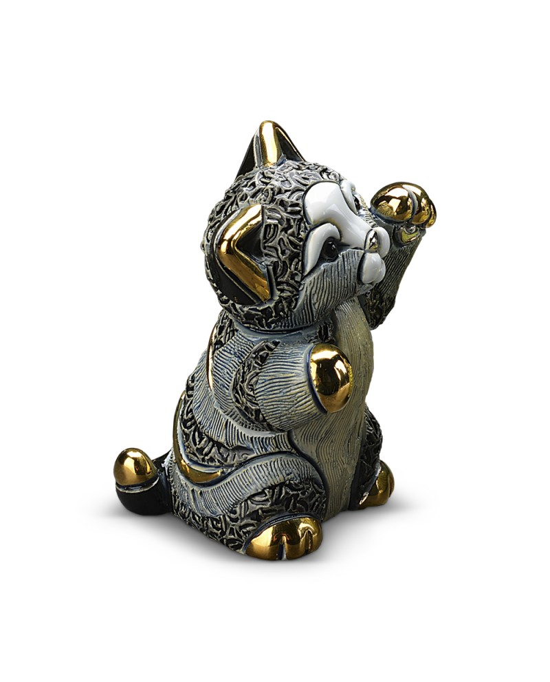 Statuette de bébé chat rayé en céramique sculptée et peint à la main, émail coloré, pulvérisation or 18 carats et de platine.