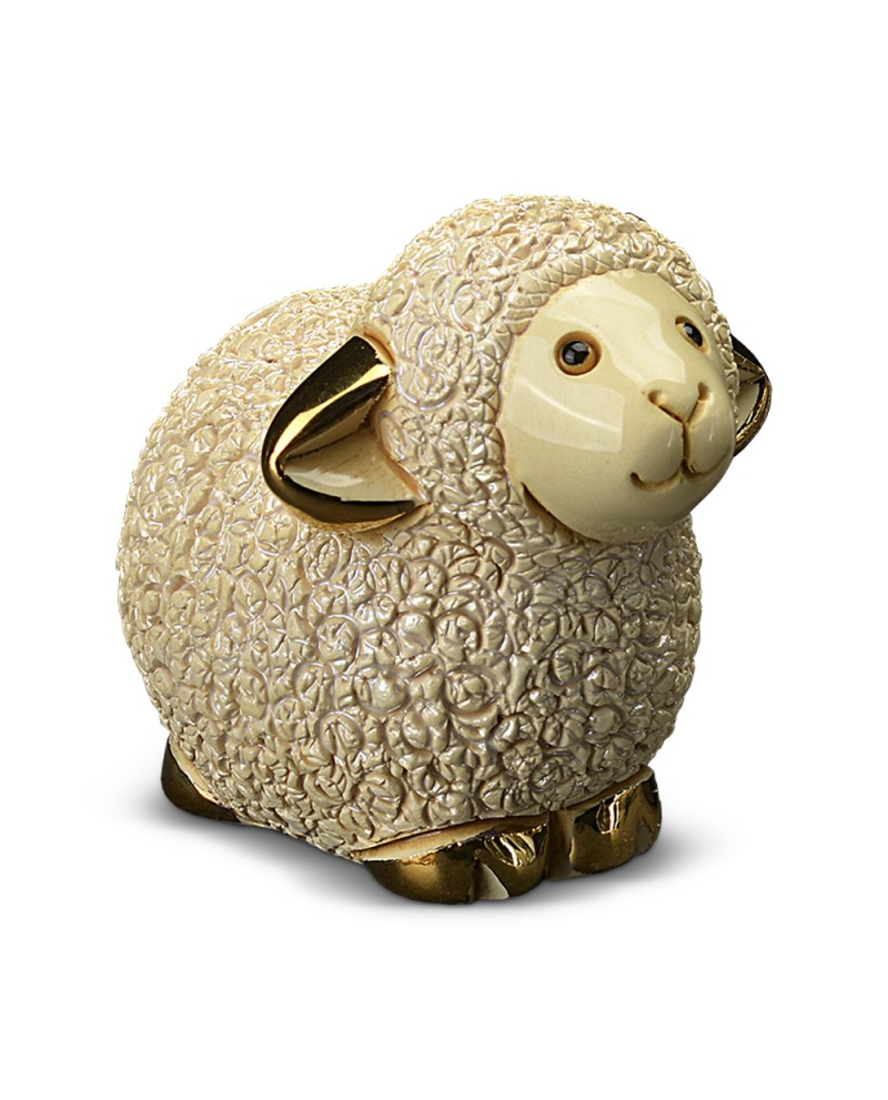 Statuette Mouton en céramique, sculptée et peinte à la main, émail coloré, pulvérisation or 18 carats et de platine.