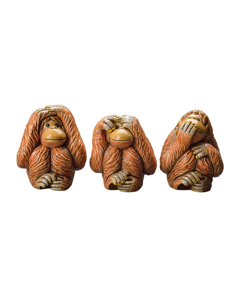 Statuettes Singes de la sagesse en céramique, sculptées et peintes à la main, émail coloré, pulvérisation or 18 carats et de platine.