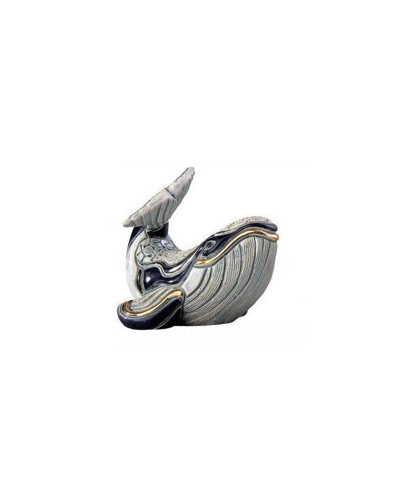 Statuette de bébé baleine en céramique sculptée et peint à la main, émail coloré, pulvérisation or 18 carats et de platine.