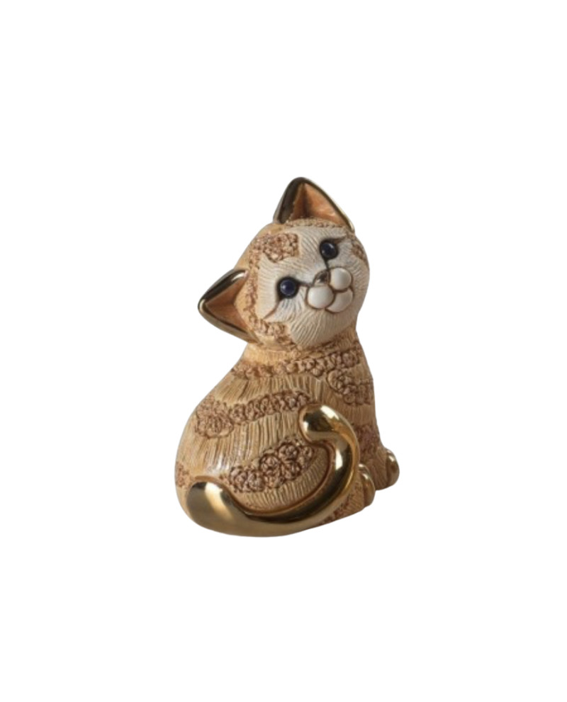 Statuette de bébé chat Ginger en céramique sculptée et peint à la main, émail coloré, pulvérisation or 18 carats et de platine.