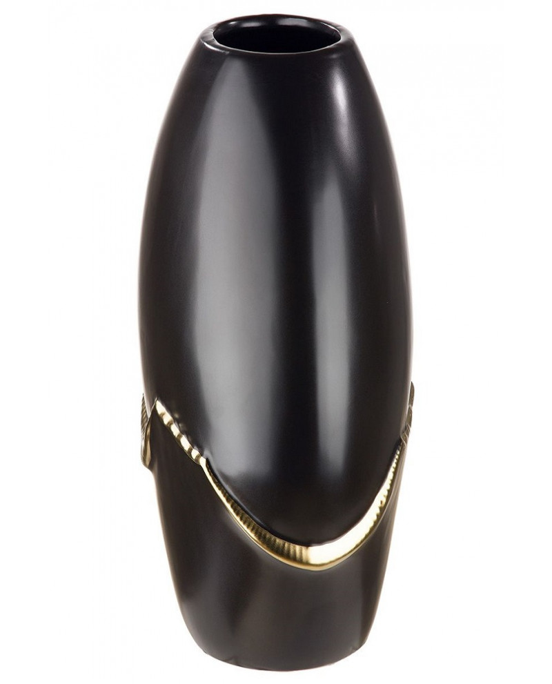 Vase en céramique, couleurs noir et doré.