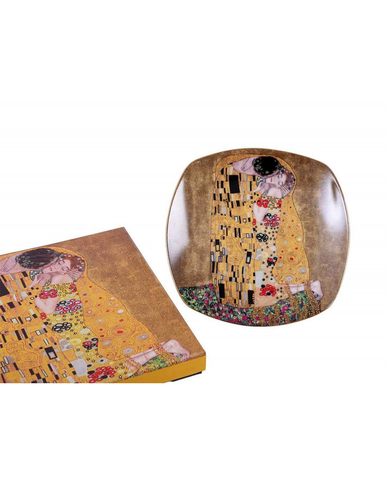 La collection d'articles d'art de la table G.Klimt est une gamme artistique délicate et raffinée. Cette assiette représente le décor de l'oeuvre *Le baiser* à la perfection, sur la boîte cadeau et l'article.