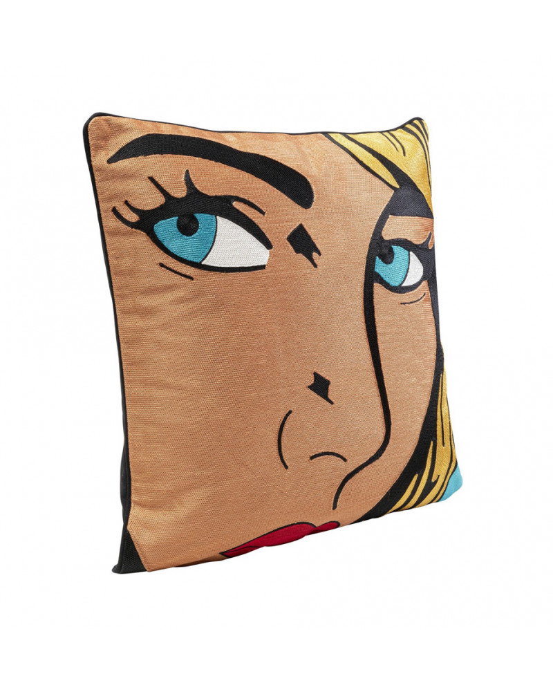 Coussin décor visage bd housse coton, rembourrage polyester (laver à la main).