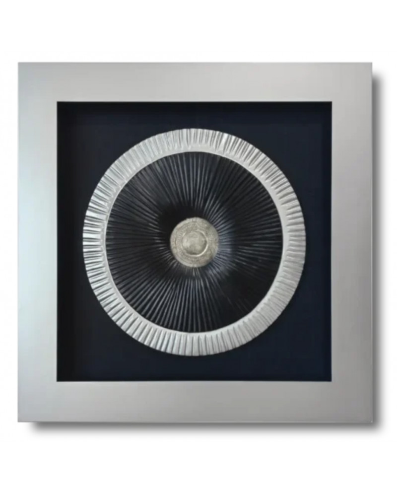Tableau en bois sculpté, argent texturé, scellé avec du verre.