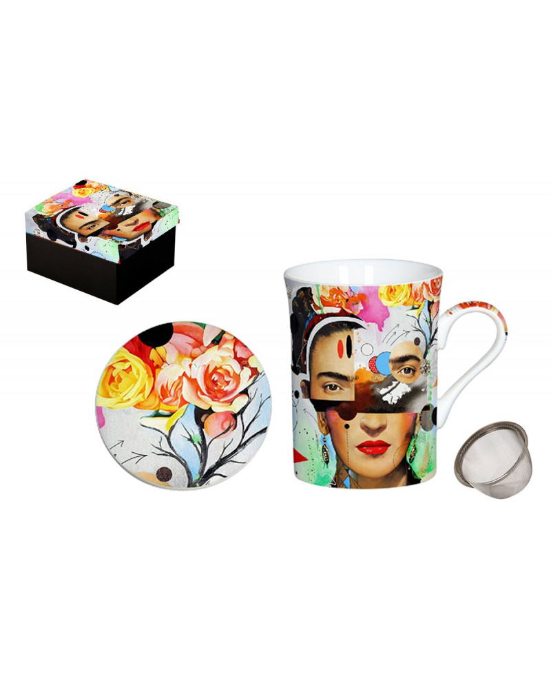 Cette tisanière de 300 ml est signée par un artiste australien, du nom de Loui Jover. Elle représente le collage *Kahlo Analytica*, rendant hommage à l'icône Frida Kahlo. Cette œuvre créative inspire la modernité, grâce à un savant mélange de gouache, de déconstruction, et de formes géométriques. Son beau coffret aux couleurs vives en fait le cadeau idéal. Accessoires inclus: couvercle et filtre à thé